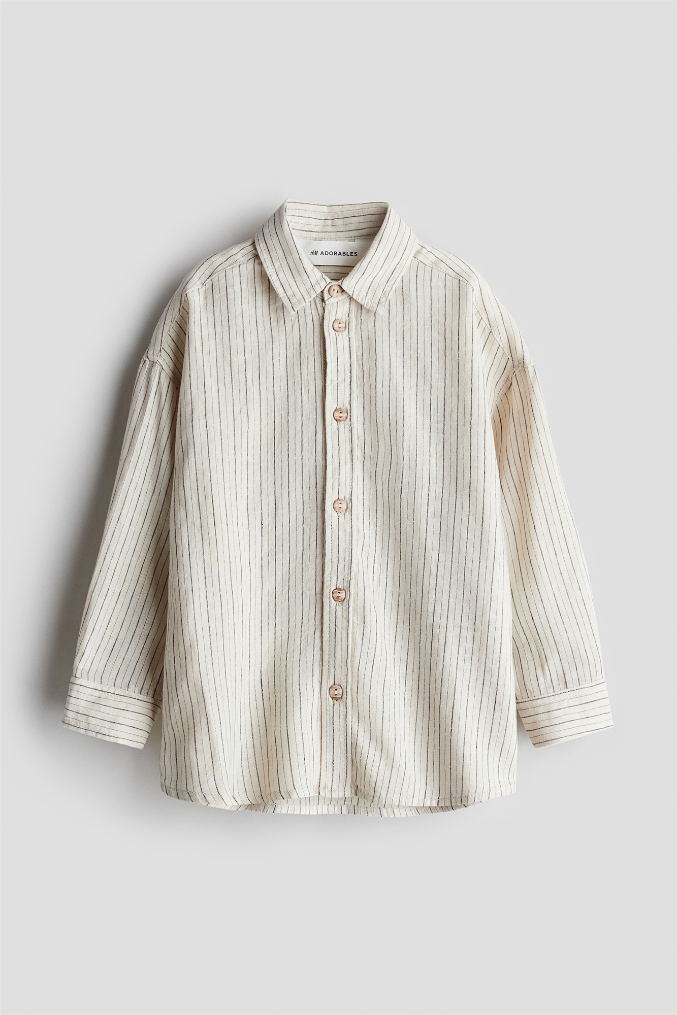 H&M Adorables. Рубашка с длинными рукавами из льняной смеси с мягким, воздушным плетением идеально подходит для теплых летних дней. Рубашка имеет отложной воротник и слегка спущенные плечи. Рубашка украшена гладкими пуговицами из ореха корозо - неаллергенного ореха, который долговечен.