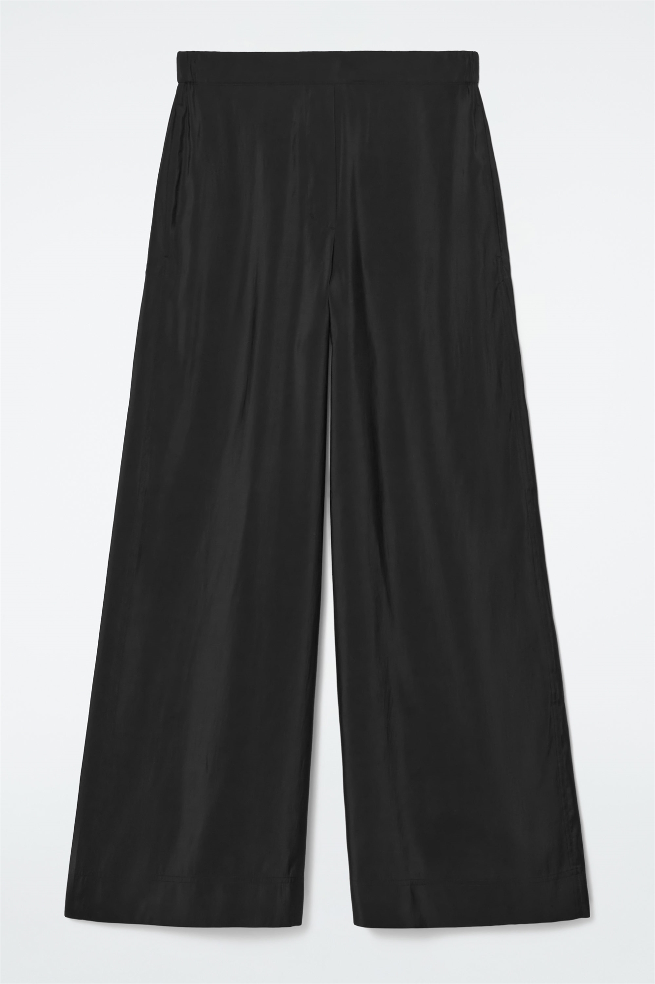 Эти современные брюки - свежий взгляд на классику от COS. Легкий материал из модальной смеси TENCEL™ нежно переливается на свету, а темный цвет - элегантный выбор для вечера. Носите с соответствующим топом. Регулярный крой Эластичный пояс TENCEL™ - бренд компании Lenzing AG. TENCEL™ Modal изготовлен из экологически чистого букового дерева, возобновляемого сырья Внешний материал: 81% TENCEL™ Modal, 19% полиэстера. Подкладка карманов: 100% вискоза. Детали исключены/Машинная стирка Внутренняя длина ноги в размере 36 = 73 см/Модель носит размер 36