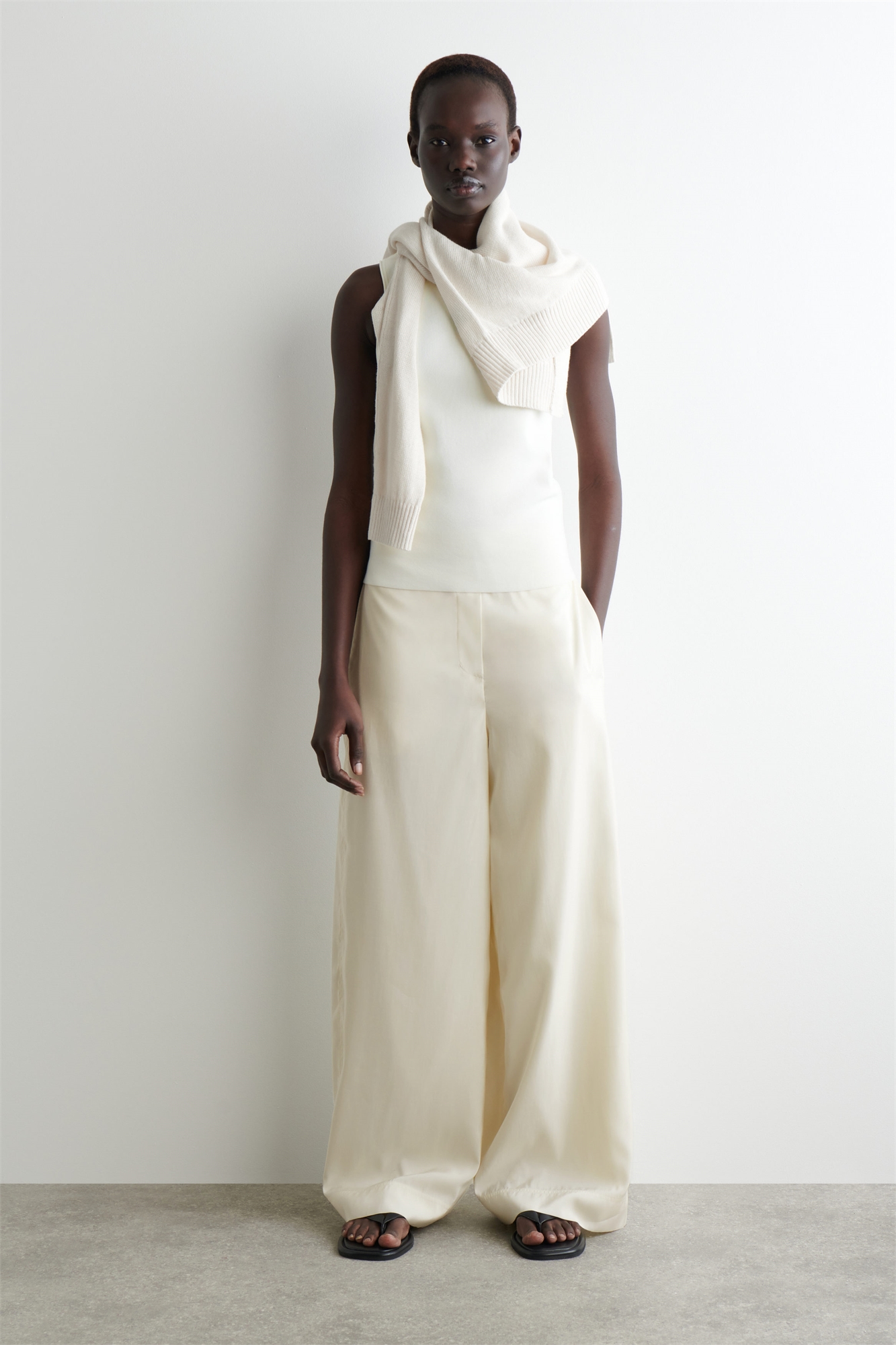 Эти современные брюки - свежий взгляд на классику от COS. Легкий материал из модальной смеси TENCEL™ нежно переливается на свету, а темный цвет - элегантный выбор для вечера. Носите с соответствующим топом. Регулярный крой Эластичный пояс TENCEL™ - бренд компании Lenzing AG. TENCEL™ Modal изготовлен из экологически чистого букового дерева, возобновляемого сырья Внешний материал: 81% TENCEL™ Modal, 19% полиэстера. Подкладка карманов: 100% вискоза. Детали исключены/Машинная стирка Внутренняя длина ноги в размере 36 = 73 см/Модель носит размер 36