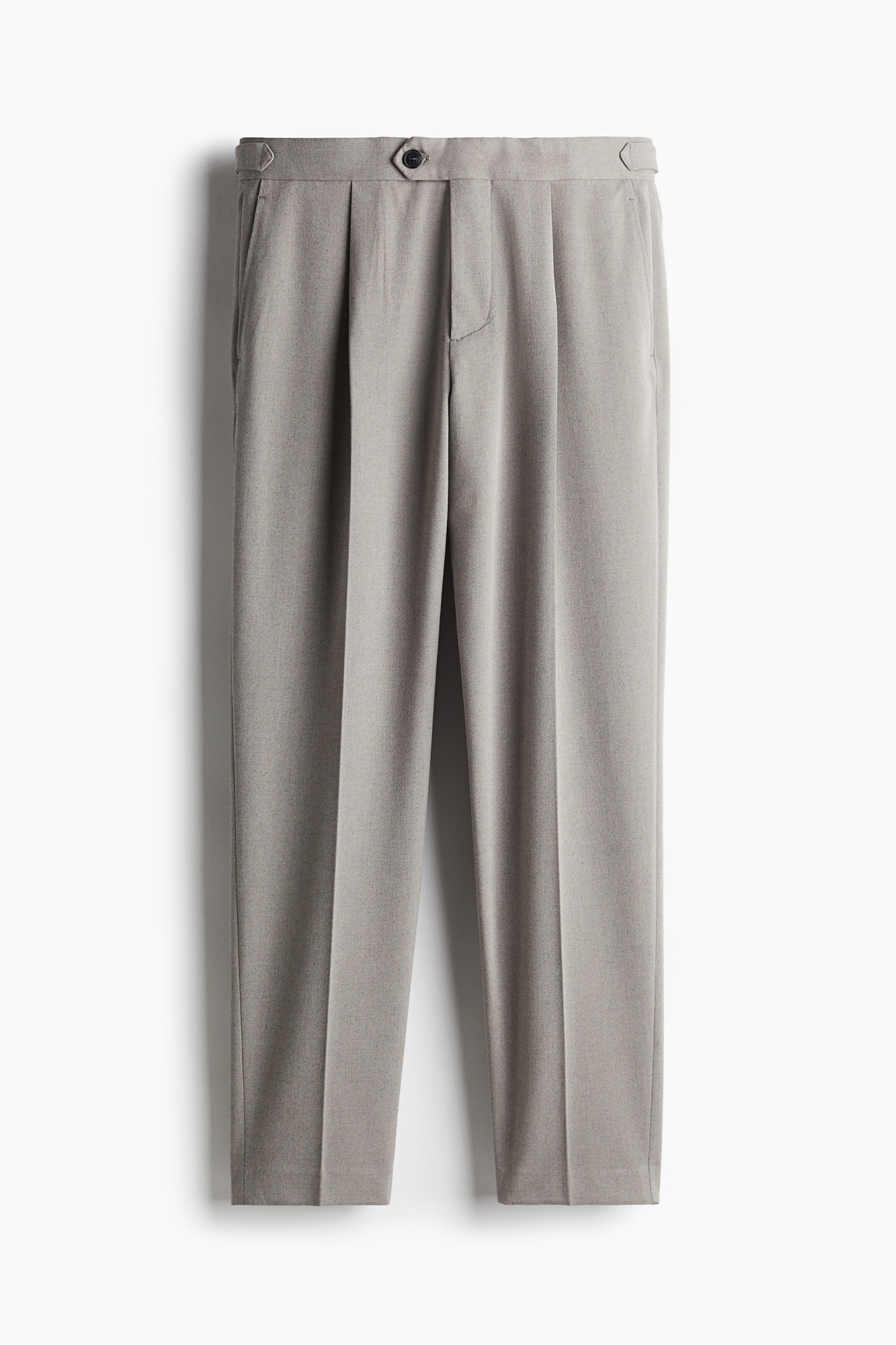 Приталенные брюки полной длины из вискозной смеси с застежкой на крючок и пуговицу. Косые боковые карманы, втачные карманы сзади и накладные складки спереди и сзади. Регулярный крой для комфортного ношения и классического силуэта.