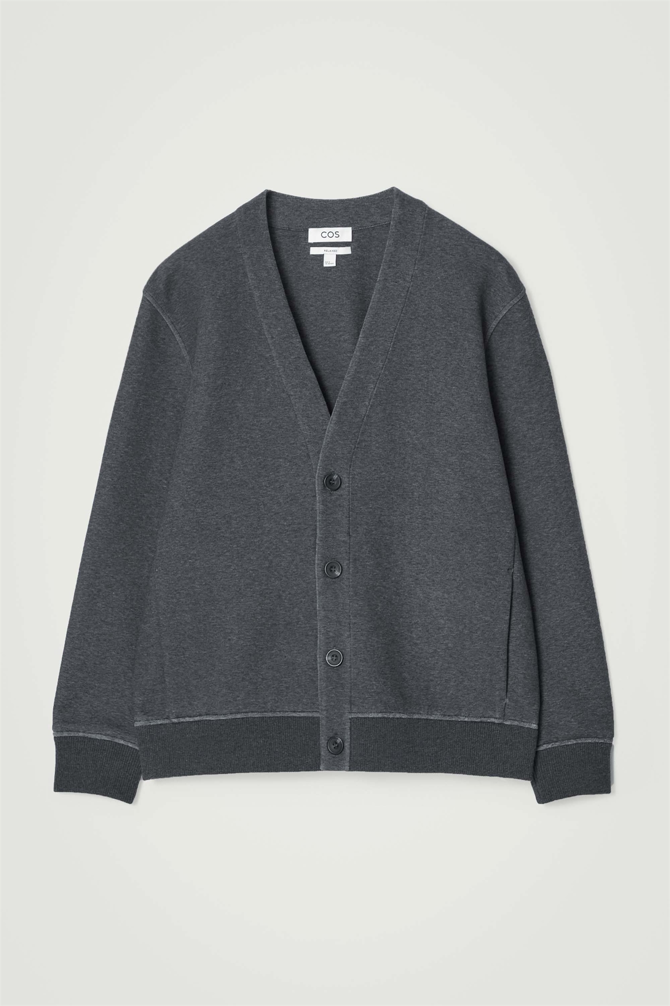В этом сезоне классическая одежда для отдыха представлена в элегантной интерпретации. Этот кардиган из мягкого хлопкового материала имеет свободный крой, V-образный вырез, два боковых кармана и ребристую отделку. Дополните образ подходящими брюками. Свободный крой Застежка на пуговицы Внешняя ткань: 58 % хлопка, 37 % переработанного полиэстера, 5 % эластана. Детали исключены/Машинная стирка Длина по спинке в размере S = 67,3 см/Модель носит размер S