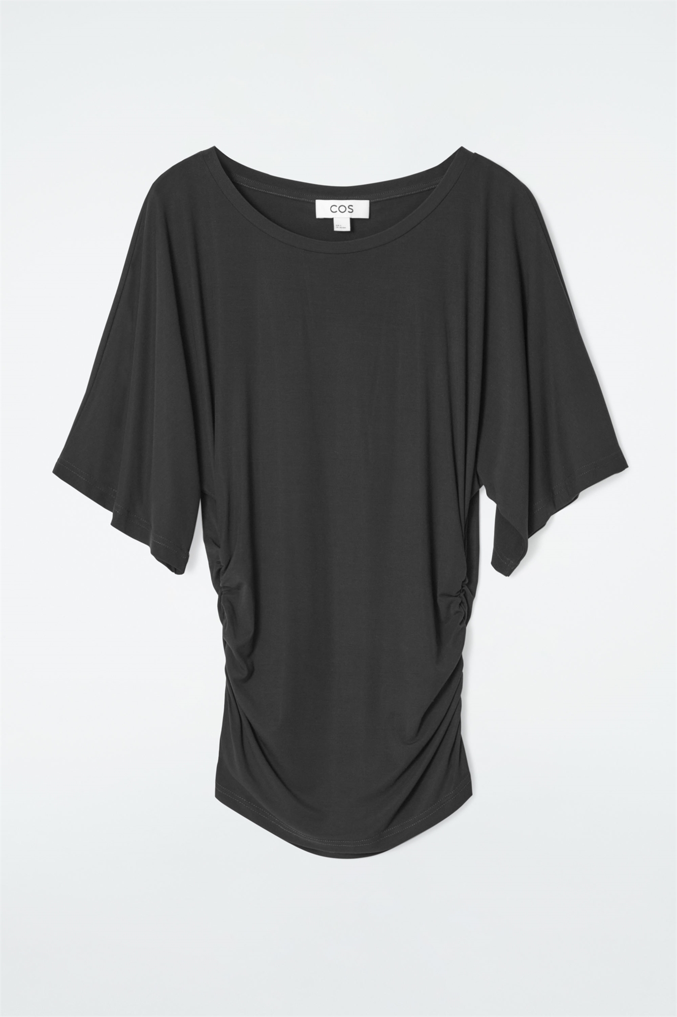 Эта черная футболка отличается нежными складками с обеих сторон. Изготовленная из мягкого трикотажа, она имеет круглый вырез и рукава с разрезами, которые красиво драпируются. Зауженный крой ECOVERO™ - бренд компании Lenzing AG. Волокна вискозы получают из сертифицированных возобновляемых древесных ресурсов с использованием более экологичного производственного процесса Верхний материал: 92% вискозы ECOVERO™, 8% эластана. Детали исключены/Машинная стирка Длина по спинке в размере S = 69 см/Модель носит размер S