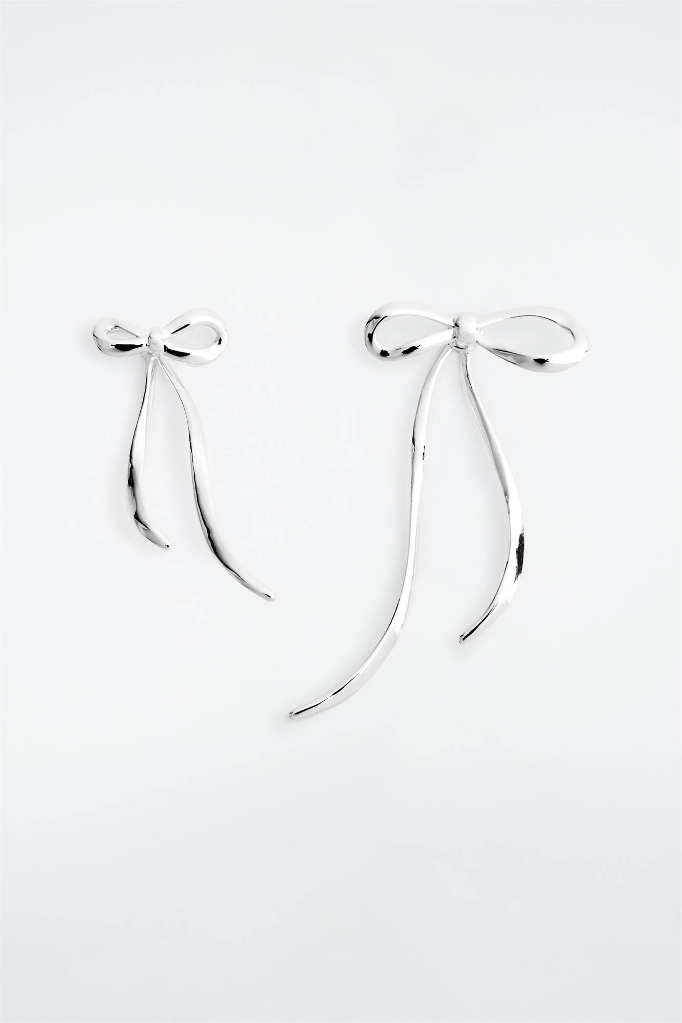 Эти серьги в форме неровных бантов представляют собой игриво-элегантный тренд сезона. Каждое изделие изготовлено из посеребренной переработанной латуни и отлито вручную, создавая уникальные формы петель. Ступенчатые петли служат застежками для сережек, поэтому они элегантно сидят за ухом. Подходит для проколотых ушей Застежка-колокольчик Латунь - универсальный материал, который может быть переработан несколько раз без потери своих свойств Верхний материал: 100 % переработанная пост-потребительская латунь. Покрытие: 100% серебро. Детали исключены