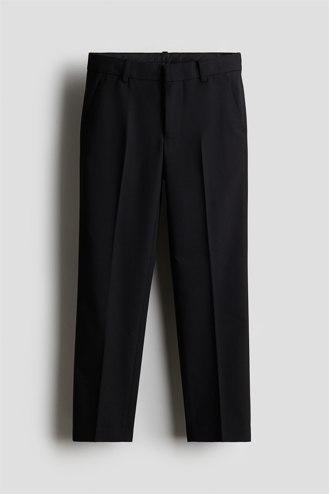 Костюмные брюки из тканого материала с регулируемым эластичным поясом. Ширинка на молнии с застежкой на крючок и глазок и пуговицу. Боковые карманы, втачные задние карманы и зауженные ноги со складками.
