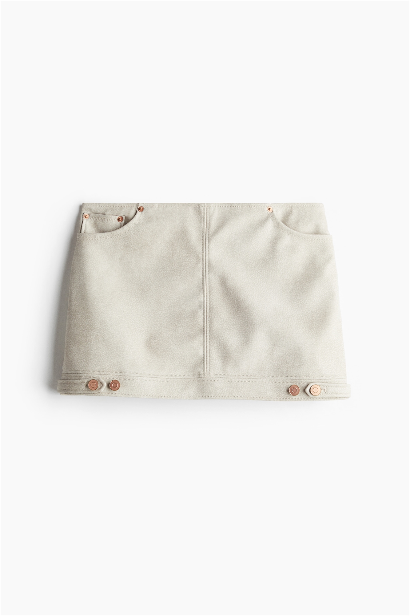 Мини-юбка из зернистой ткани с покрытием, передние карманы, карман для монет и скрытая застежка на молнию и пуговицу с петлей сзади. Планка с регулируемой застежкой на пуговицах по бокам подола. На подкладке.