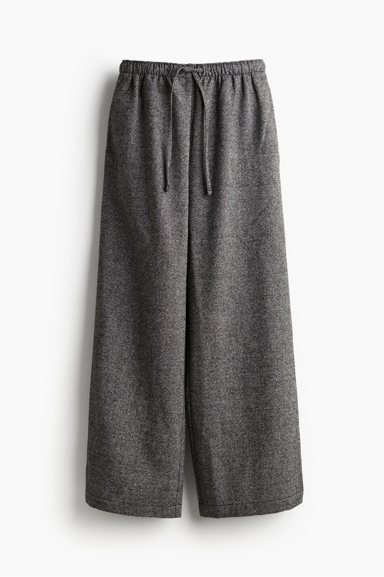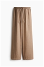 Свободные брюки из тканого материала с высокой талией с эластичной отделкой и утягивающим шнурком. Небрежные боковые карманы, накладные задние карманы на пуговице и прямые ноги.