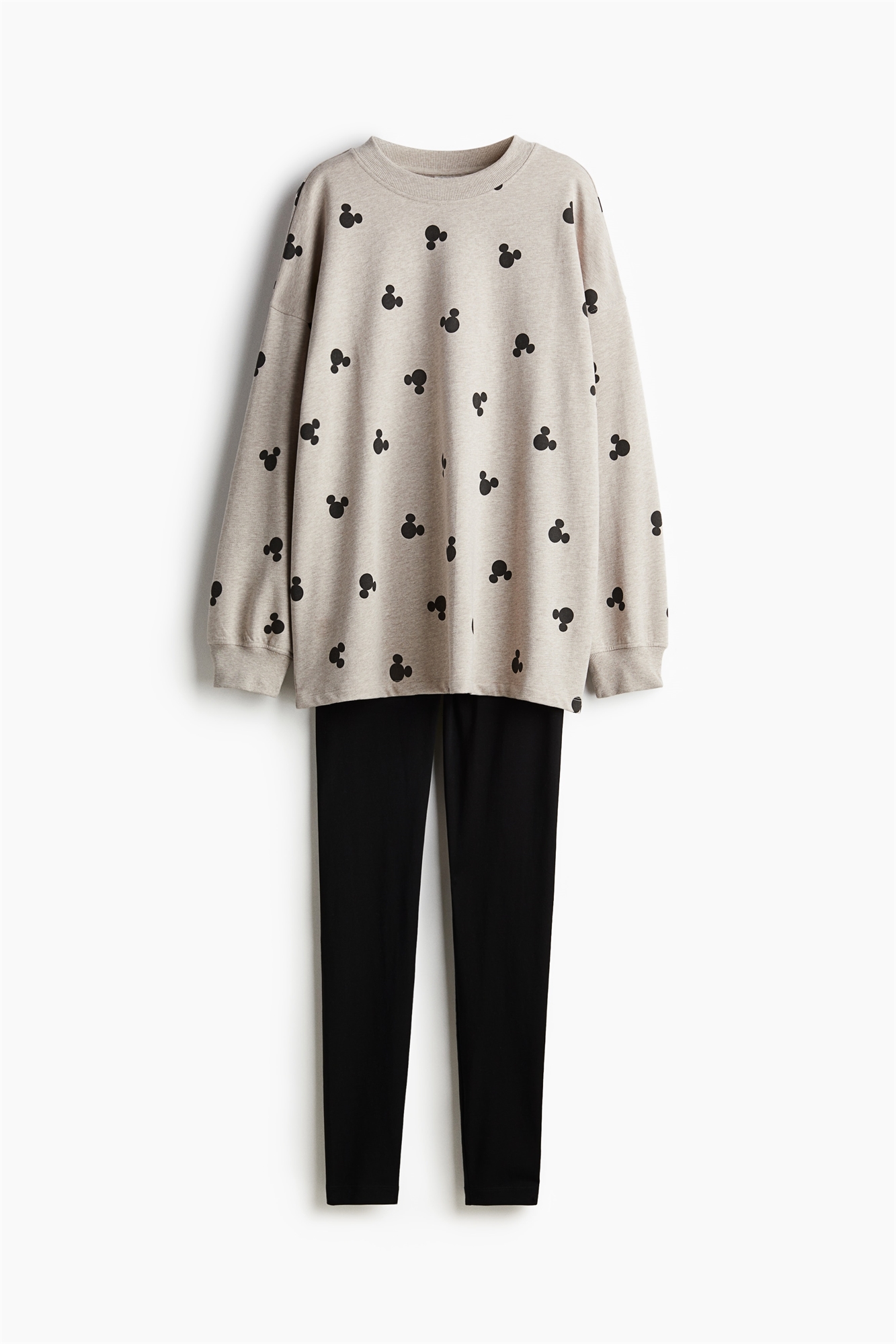 Пижама с длинной рубашкой из легкой потной ткани и леггинсами из джерси. Рубашка с длинными рукавами, спущенными плечами и манжетами на вырезе и рукавах. Мягкая начесанная внутренняя сторона. В комплекте с леггинсами с эластичным поясом.