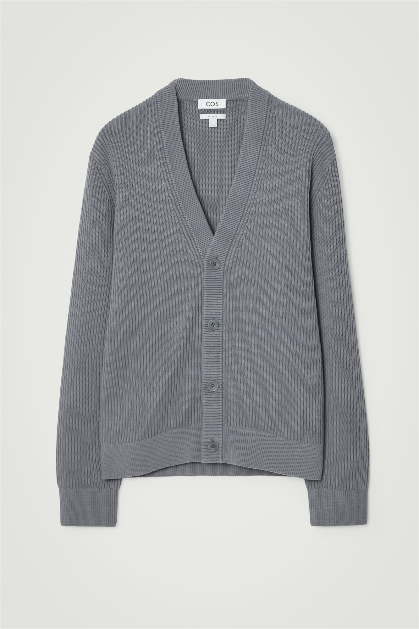 В этом сезоне команда мужской одежды COS переосмыслила классические трикотажные вещи. Этот кардиган из толстого трикотажа с V-образным вырезом имеет ребристую отделку и кислотную стирку для создания индивидуального образа. Носите его поверх простой футболки. Свободный крой Застежка на пуговицы Внешняя ткань: 100% хлопок. Детали исключены/Машинная стирка Длина по спинке в размере M = 65,5 см/Модель носит размер M
