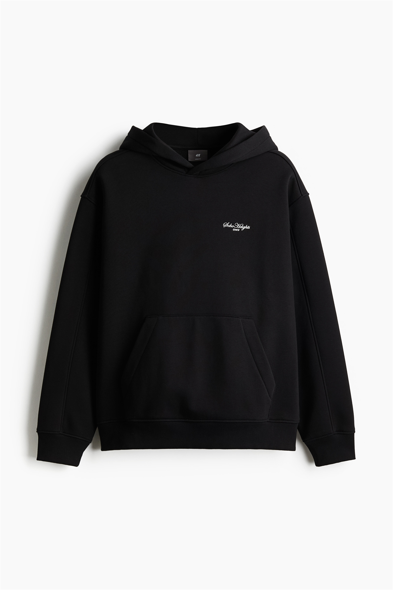 Толстовка из плотной хлопковой ткани с мягкой начесом внутри и мотивами. Двухслойный капюшон, спущенные плечи, длинные рукава, карман-кенгуру, манжеты и подол в рубчик. Свободный крой для пышного, но не чрезмерно большого силуэта.