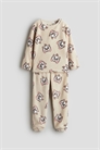 Пижама из мягкого велюра с принтом. Верхняя часть с круглым вырезом, длинными рукавами и эластичными манжетами. Низ с эластичным поясом и тесемками по краям.