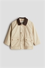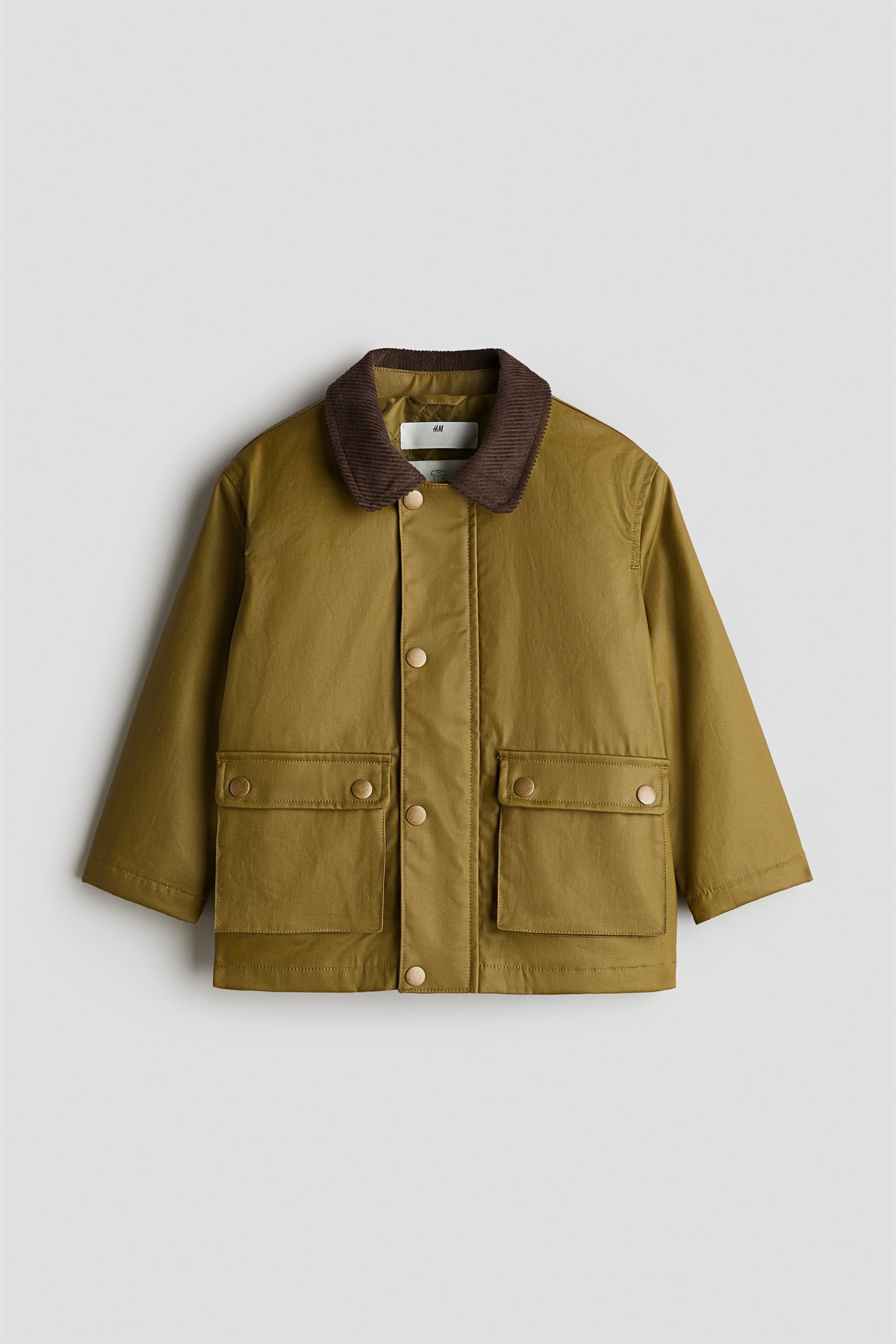 Куртка с легкой подкладкой из вощеной хлопковой саржи с вельветовым воротником. Свободный крой, застежка на молнию и ветрозащитная планка с прижимами спереди, длинные рукава с заплатками на локтях, прорезные передние карманы с клапаном и прижимами. Стеганая подкладка.