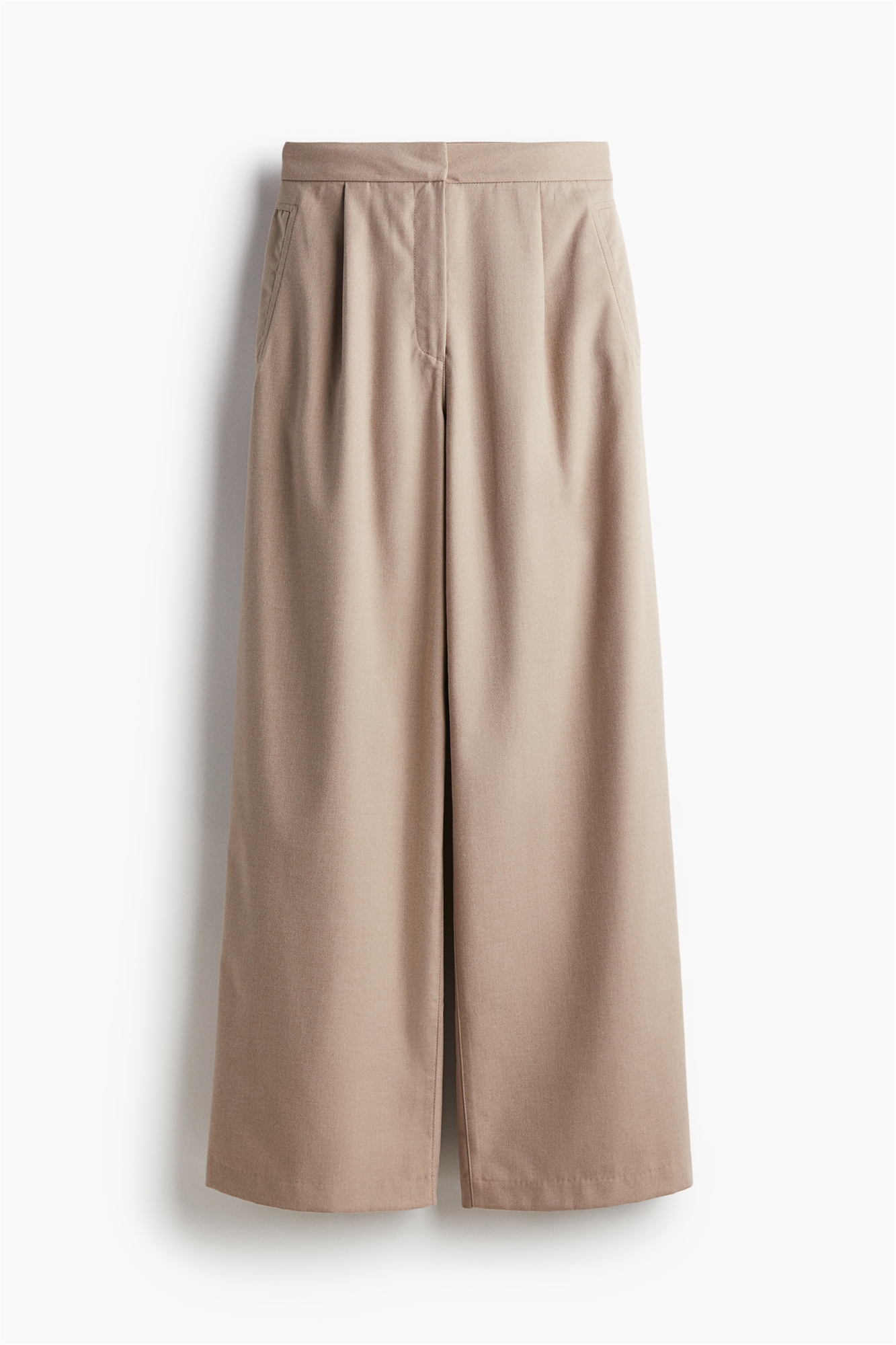 Брюки из мягкой саржи с широкими штанинами. Высокая талия, ширинка на молнии и потайная застежка на крючок и планку, втачные боковые карманы и формирующие вытачки сзади.