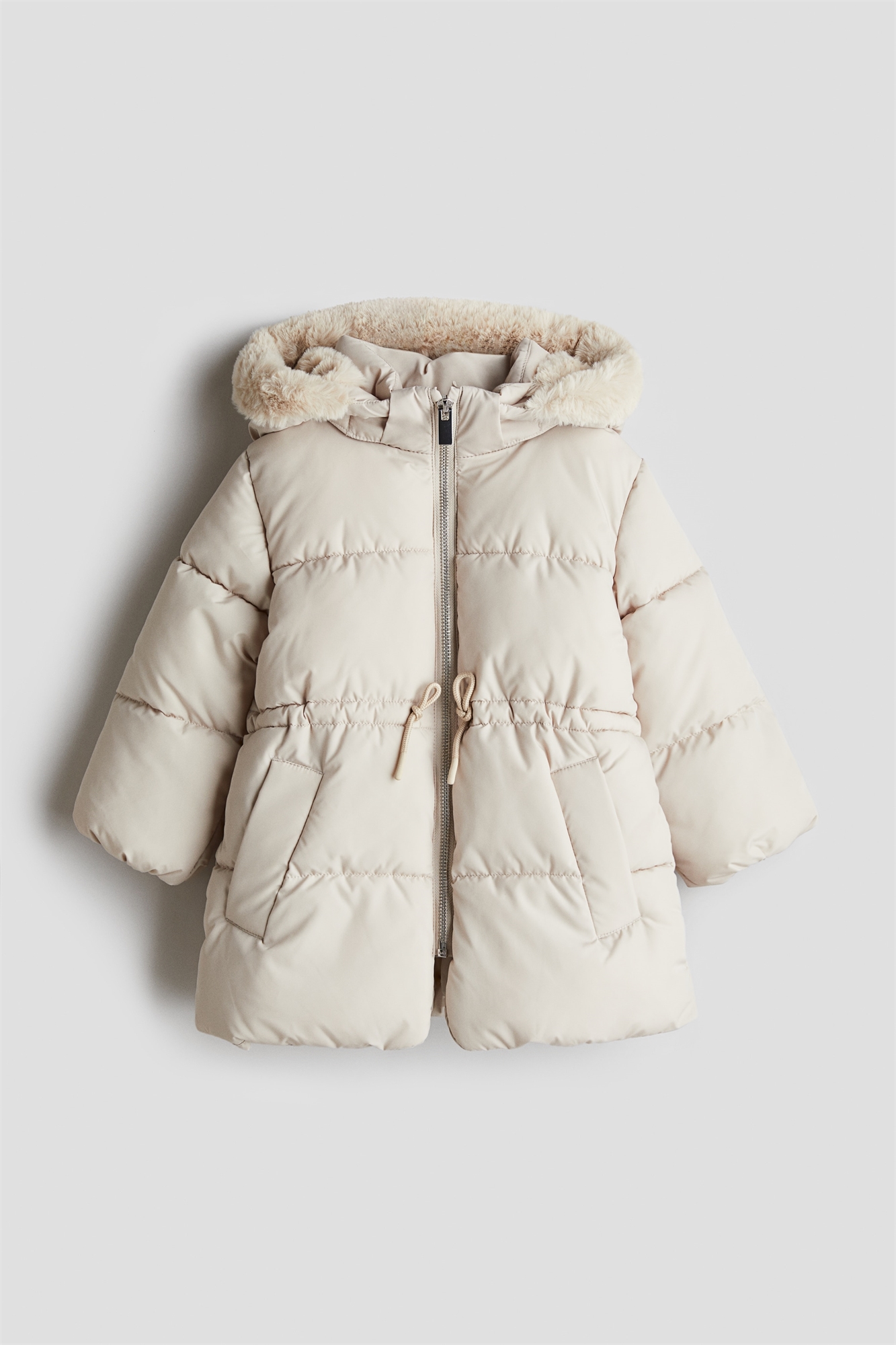 Пуховая куртка с мягкой подкладкой и съемным капюшоном с ворсовой подкладкой. Воротник-стойка, застежка-молния спереди и эластичные манжеты со складками. Затягивающаяся талия и передние карманы. На подкладке.