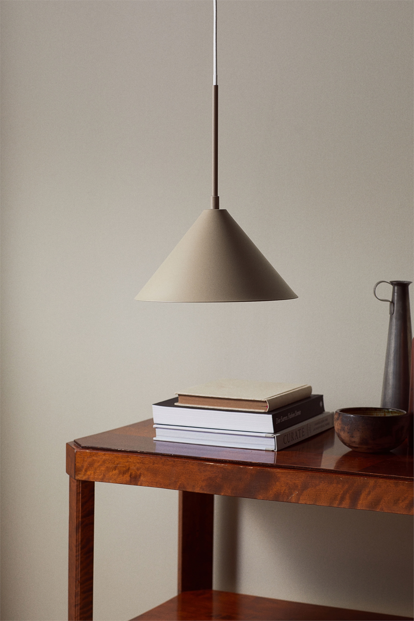 Нестареющий металлический подвесной светильник с изящным конусообразным дизайном, матовым покрытием и шнуром из ткани. Патрон E14. Максимальная мощность 6 Вт. Лампочка в комплект не входит. Высота 14 см. Диаметр 25,5 см. Длина шнура 1,6 м.