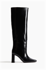Сапоги с широким голенищем, квадратным носком и закрытым каблуком. Атласные подкладки и стельки.