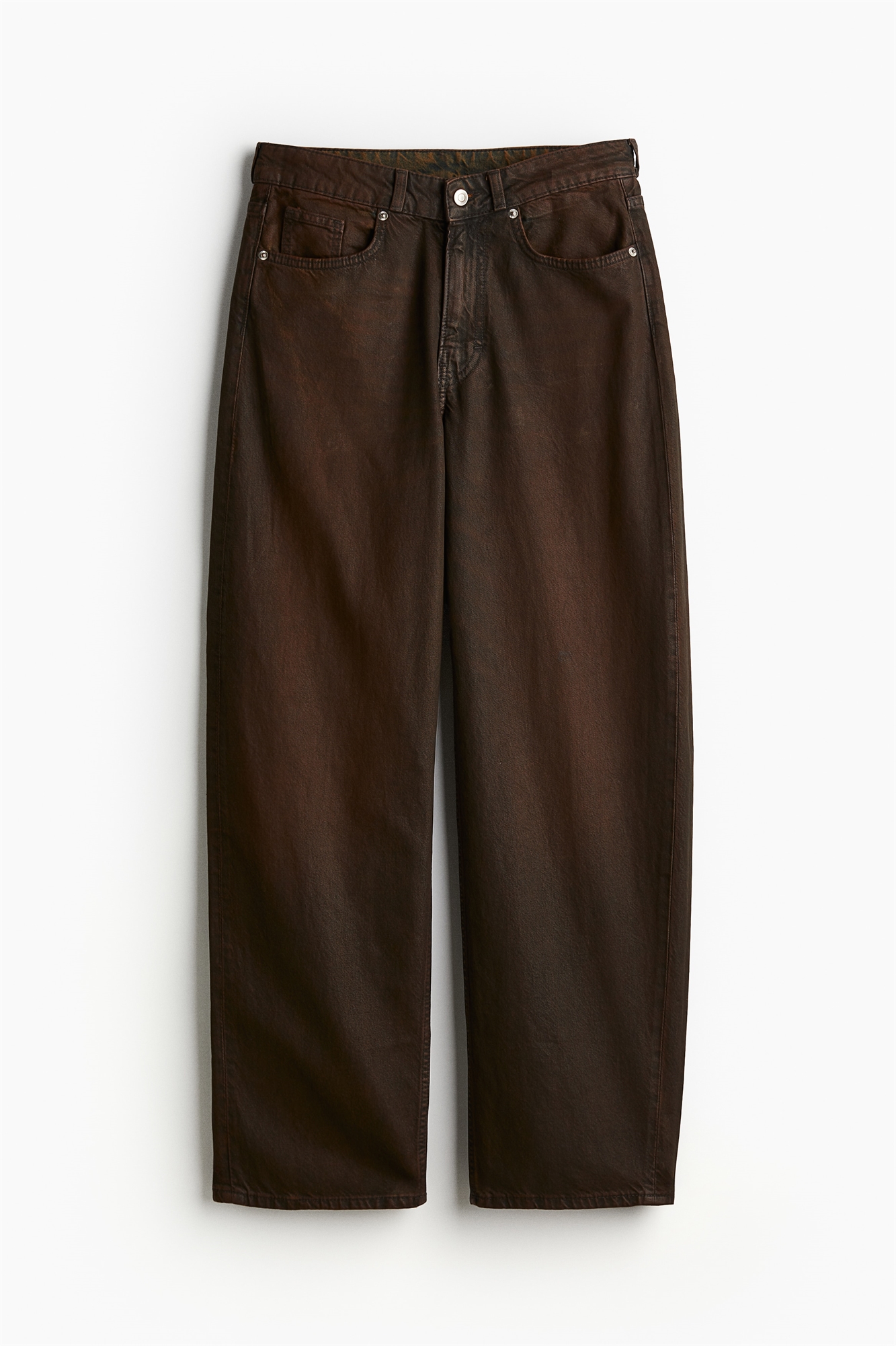 Брюки с 5 карманами из хлопковой саржи с покрытием. Расслабленный крой с обычной талией, ширинка на молнии и пуговице и широкие штанины.