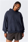 Худи оверсайз из мягкой, плотной смеси хлопка и переработанного полиэфирного флисового трикотажа. Модель имеет сутулый силуэт с опущенными плечами, карман-кенгуру, большой вместительный капюшон без утяжки и ребристые края.