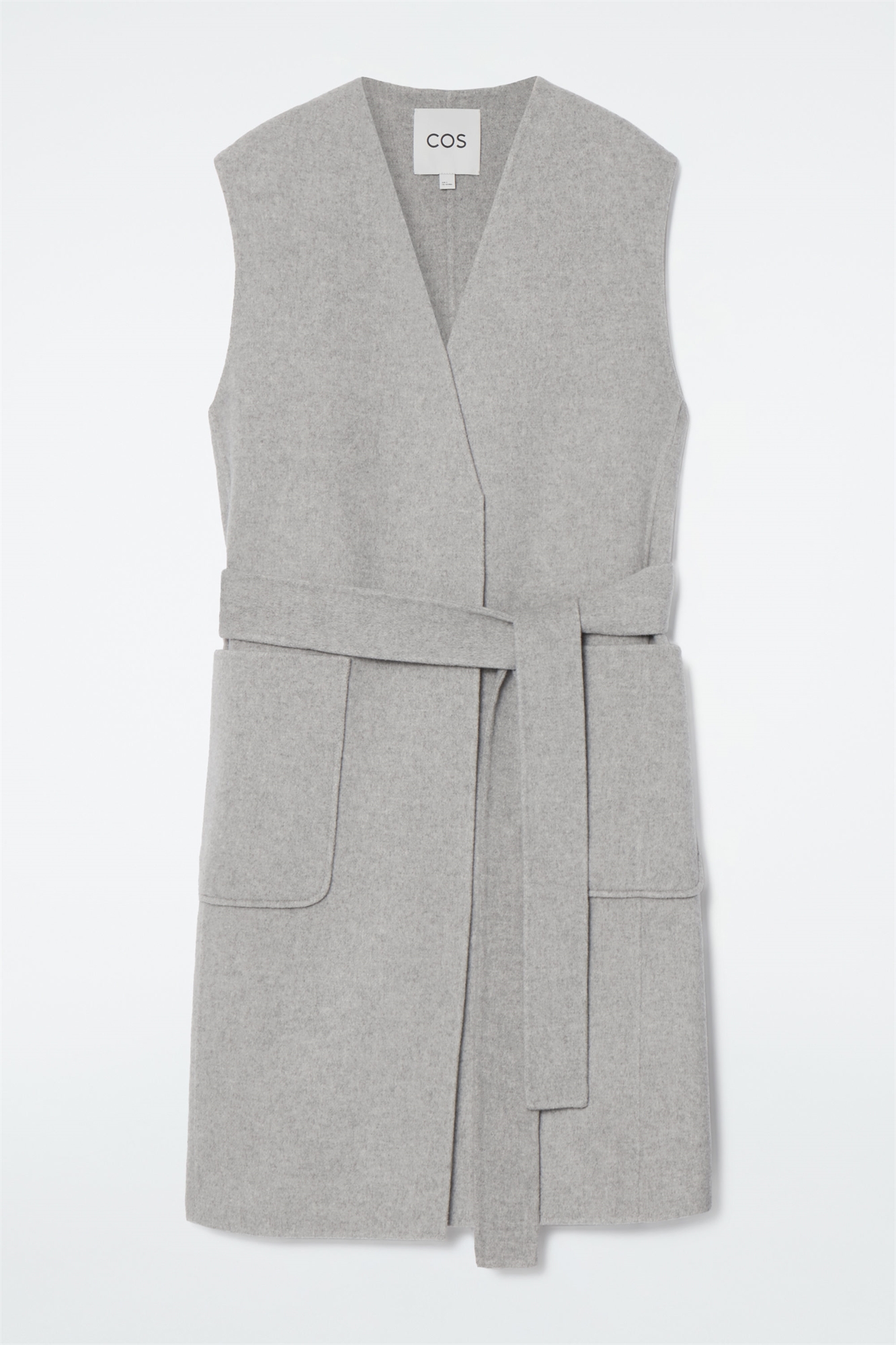 Эта длинная жилетка из двухслойной шерстяной смеси голубовато-серого цвета с накладными карманами, потайной застежкой и одним вентиляционным отверстием сзади. Модель без рукавов подходит для ношения в переходный период. Регулярный крой Скрытая застежка-защелка Этот продукт содержит шерстяное волокно Responsible Wool Standard TE-00047206 (RWS) с ферм, сертифицированных в соответствии с требованиями к благополучию животных и землепользованию Шелл: 60% шерсти RWS, 40% лиоцелла TENCEL™. Без учета отделки / Сухая чистка Длина по спинке размера S составляет 114,8 см / Модель носит размер S