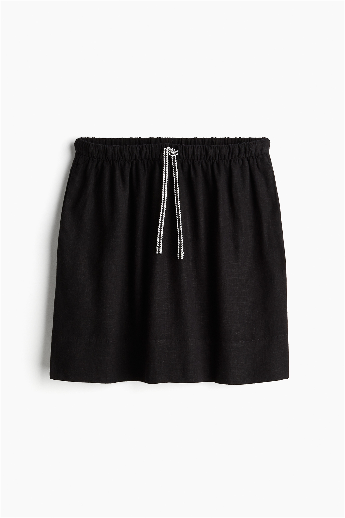 Мини-юбка из воздушного льна и вискозы с незаметными боковыми карманами и высокой талией с эластичной отделкой и узким шнурком. Без подкладки.