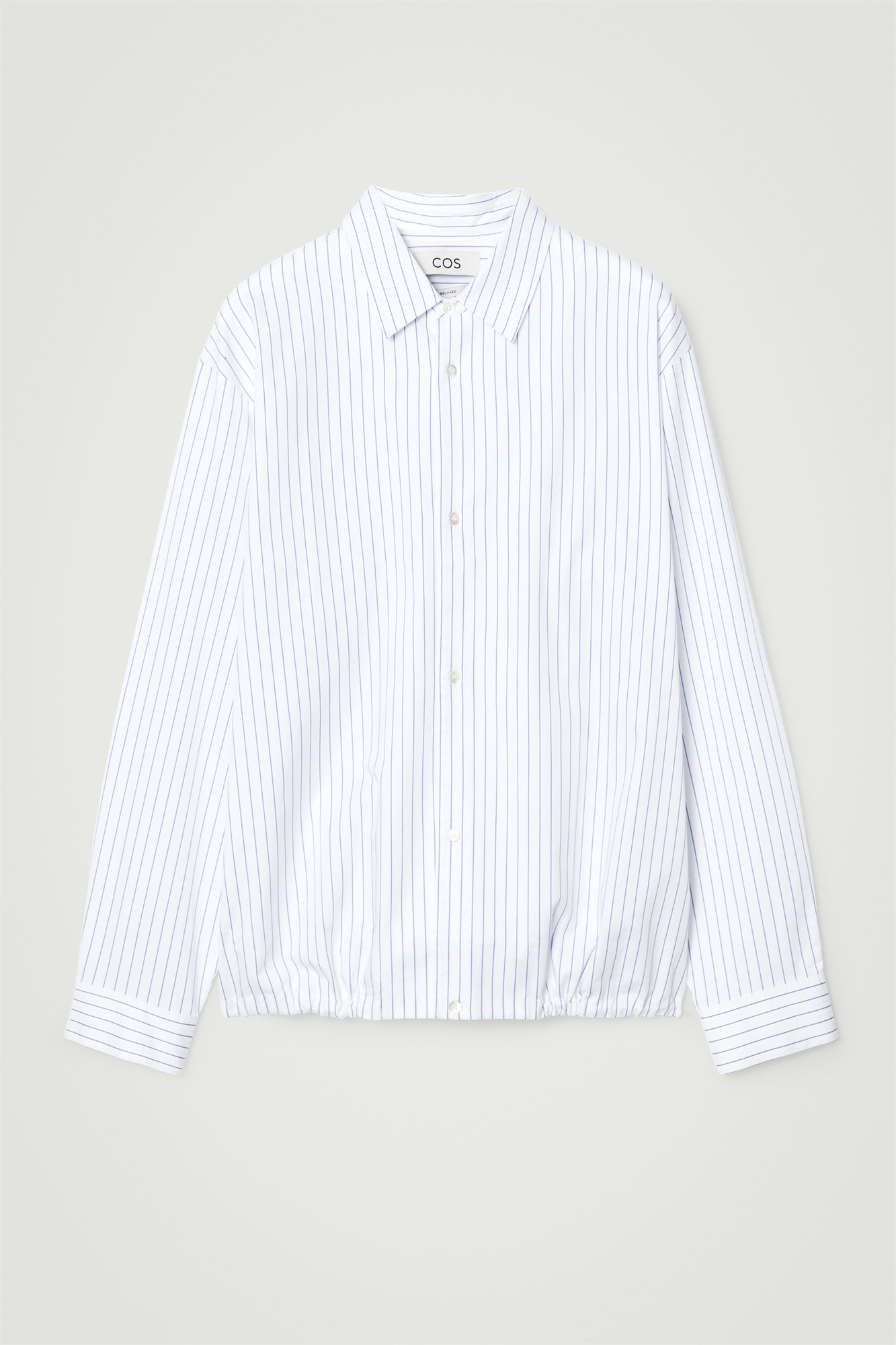 Эта современная рубашка с деталями в стиле утилитаризма выполнена из хлопка и украшена синими полосками. На подоле имеются завязки, которые позволяют регулировать свободный силуэт. Свободный крой Застежка на пуговицы Внешняя ткань: 100% хлопок. Детали исключены/Машинная стирка Длина по спинке в размере M = 70 см/Модель носит размер M