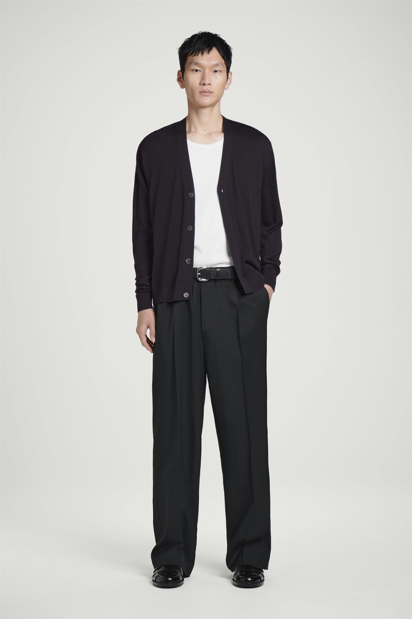 Подиумная коллекция COS SS25 основывается на кодах дома - долговечном дизайне и исключительном мастерстве. Эти полированные брюки сшиты из шерстяной саржи RWS, выбранной за ее легкость и непринужденную драпировку. Они имеют слегка зауженную форму, переходящую в ботинок, и дополнены эластичным поясом и накладным карманом в стиле утилитарных вещей, чтобы умерить формальность. Подойдут к рубашке в стиле оксфорд. Свободный кройИзделие содержит шерстяное волокно Responsible Wool Standard TE-00047206 (RWS), произведенное на фермах, сертифицированных в соответствии с требованиями к благополучию животных и управлению земельными ресурсами Состав: 52% шерсть RWS, 48% вискоза. Без учета отделки / Машинная стирка Внутренняя длина штанины размера M составляет 75 см / Модель носит размер M