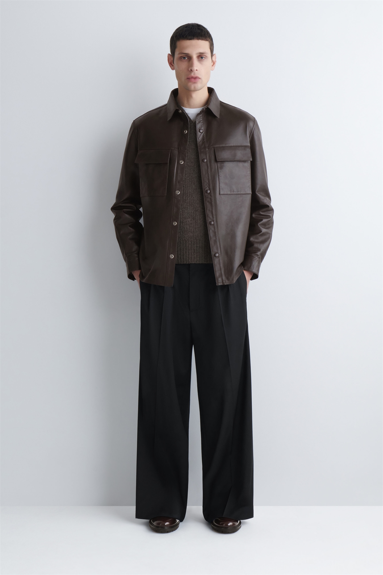 В этом сезоне команда мужской одежды COS модернизирует классические правила пошива. Эти брюки из шерстяного твила RWS имеют непринужденную форму с широкими штанинами и дополнены складками спереди и втачными карманами. Свободный крой Застежка на крючок и молнию Изделие содержит шерстяное волокно Responsible Wool Standard TE-00047206 (RWS), произведенное на фермах, сертифицированных в соответствии с требованиями к благополучию животных и землепользованию Оболочка: 100% шерсть RWS. Подкладка карманов: 100% органический хлопок. Без учета отделки / Сухая чистка Внутренняя длина ноги размера EU 48 составляет 74,87 см / Модель носит размер EU 48