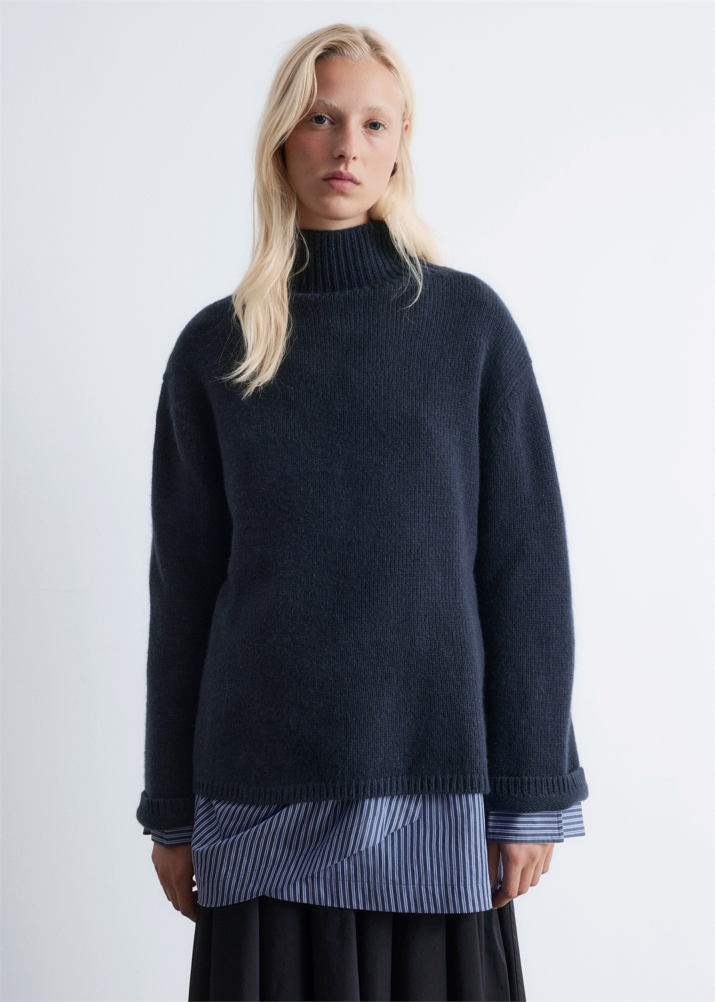 Классический джемпер-водолазка из смеси шерсти и кашемира. Джемпер дополнен уютными ребристыми манжетами и подолом. • 70% шерсти RWS TE-00047206 • 30% кашемира сертифицированы по стандарту Good Cashmere Standard • Длина джемпера: 63 см / 24,8" (размер S)