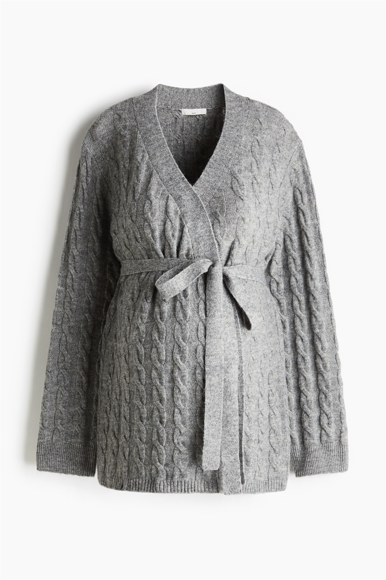 Кардиган из мягкого трикотажа в рубчик со съемным поясом-завязкой под бюстом и внутренними завязками с одной стороны. Кардиган можно носить как во время, так и после беременности.
