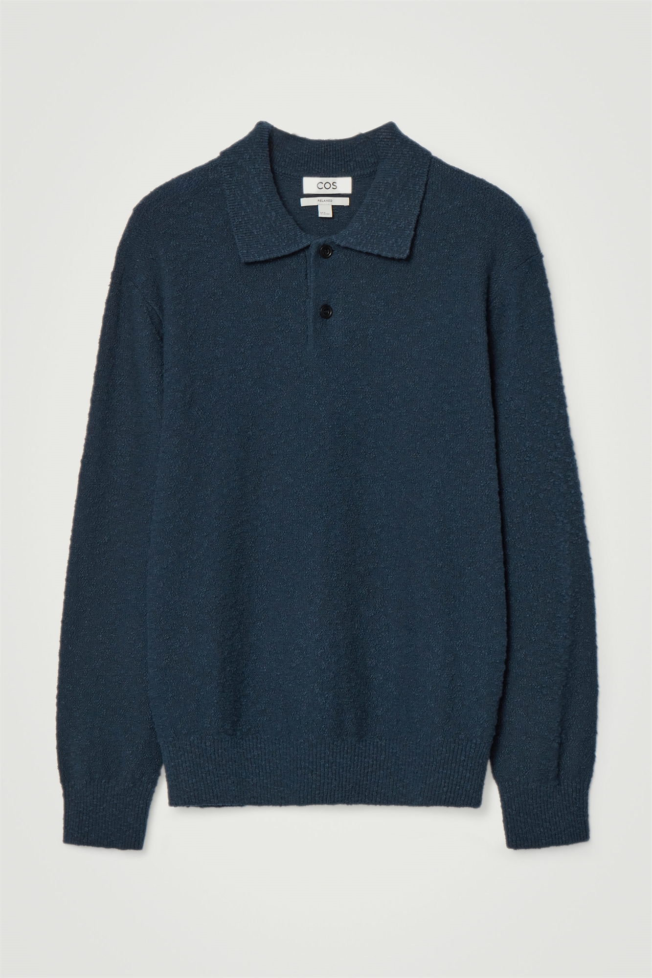Эта рубашка-поло с длинными рукавами выполнена из тактильного хлопкового трикотажа букле, который добавит фактурный акцент в ваш гардероб. Она выполнена в нестареющем темно-синем цвете и имеет ребристый воротник, свободный силуэт и спущенные плечи. Свободный крой Застежка на пуговицах Переработанный хлопок состоит из волокон, полученных из до- и послепотребительских материалов, которые перерабатываются в новую пряжу Внешний материал: 51% хлопка, 28% переработанного хлопка, 21% переработанного полиамида. Детали исключены/Машинная стирка Длина по спинке в размере M = 64,5 см/Модель носит размер M