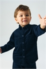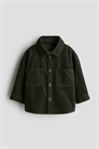 Рубашка из хлопкового вельвета с отложным воротником, пуговицами спереди, спущенными плечами, нагрудными карманами, длинными рукавами с пуговицами на манжетах и аккуратным закругленным подолом с небольшой аппликацией с одной стороны.