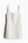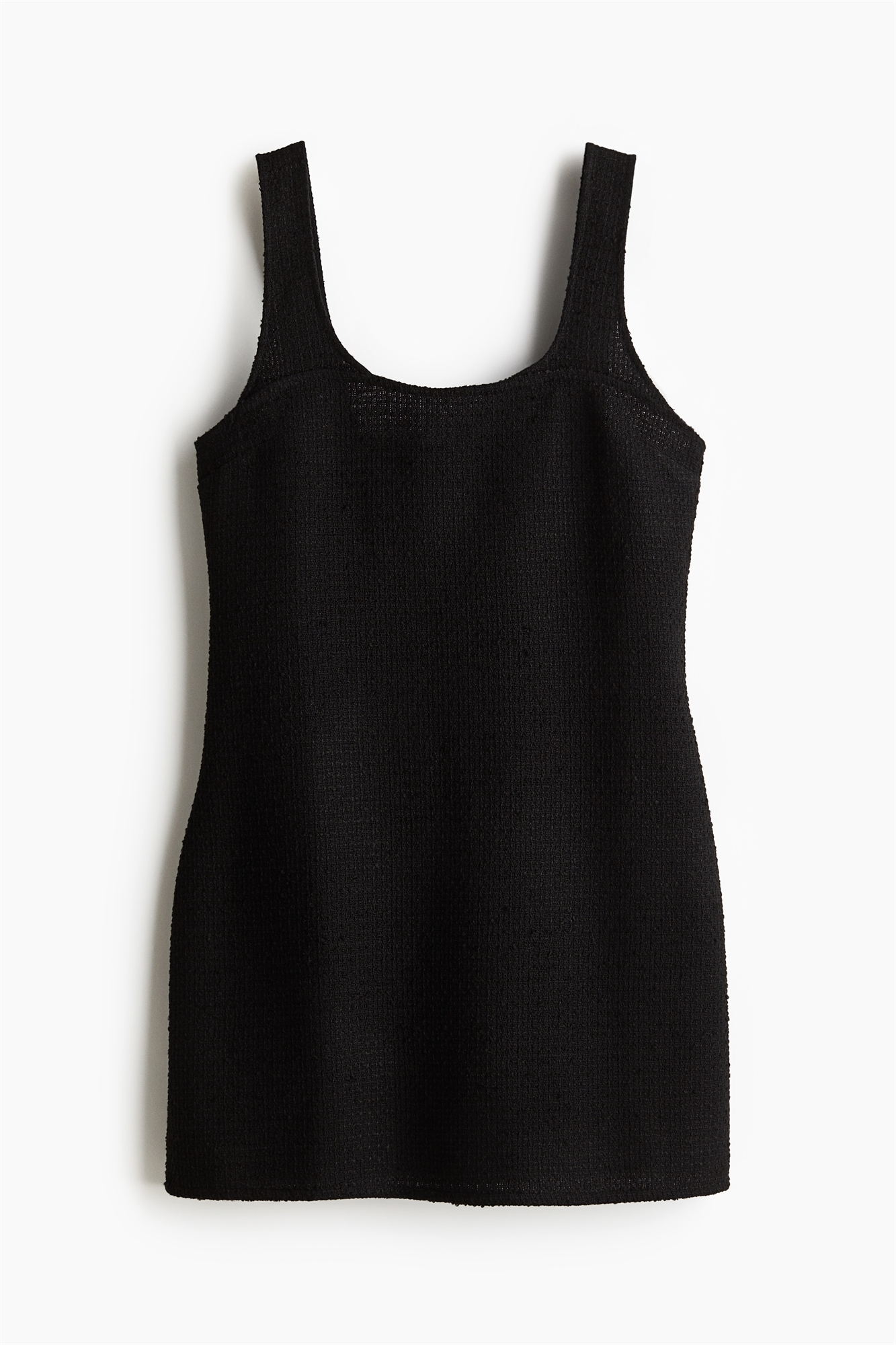 Короткое платье без рукавов из фактурного плетения с глубоким круглым вырезом и потайной застежкой-молнией сзади. Облегающий лиф и слегка расклешенная юбка. Без подкладки.
