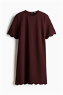 Короткое платье из мягкой саржи, украшенное гребешками. Короткие рукава, круглый вырез и отверстие для ключа с потайной пуговицей сзади на шее. Без подкладки.