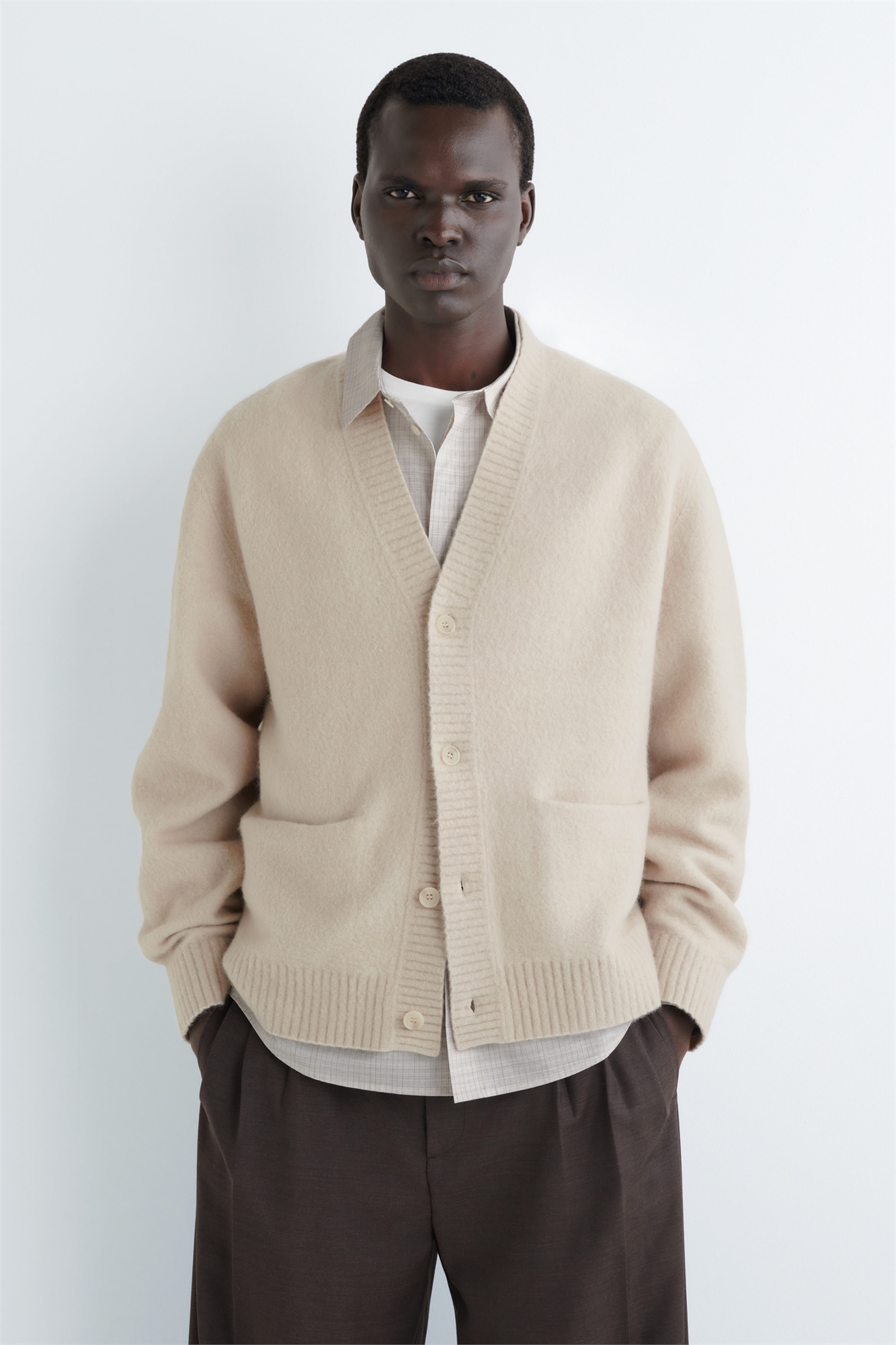 В этом сезоне в нашей коллекции трикотажа все внимание уделяется фактурным, не скользящим материалам. Изготовленный из шерсти RWS и шерсти яка, этот кардиган с мягкой матовой отделкой, V-образным вырезом горловины и ребристой пуговицей идеален для многослойности в переходный сезон. Носите его поверх элегантных фраков. Свободный кройПуговицыЭто изделие сертифицировано в соответствии со стандартом ответственной шерсти TE-00047206 (RWS) и содержит шерстяные волокна с ферм, сертифицированных в соответствии с правилами благополучия животных и сельскохозяйственными нормами Внешний материал: 60% шерсти RWS, 27% полиамида (нейлон), 10% шерсти яка, 3% переработанного эластана. Детали исключены/Сухая чистка Длина по спинке в размере M = 65 см/Модель носит размер M