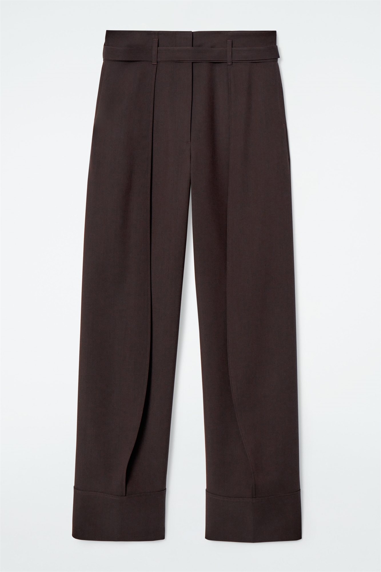 Эти брюки, созданные в духе рабочей одежды, имеют прямой силуэт с завышенными манжетами. Они изготовлены из шерстяной смеси RWS и украшены острыми складками спереди и тональным ремнем на талии. Регулярный крой Застежка на крючок и молнию Лучшая альтернатива обычному полиэстеру, переработанный полиэстер изготавливается из отходов, полученных до и после утилизации отходов Оболочка: 54% переработанного полиэстера, 44% шерсти RWS, 2% эластана. Подкладка: 100% хлопок. Без учета отделки / Машинная стирка Внутренняя длина ноги размера EU 36 составляет 73,2 см / Модель носит размер EU 36