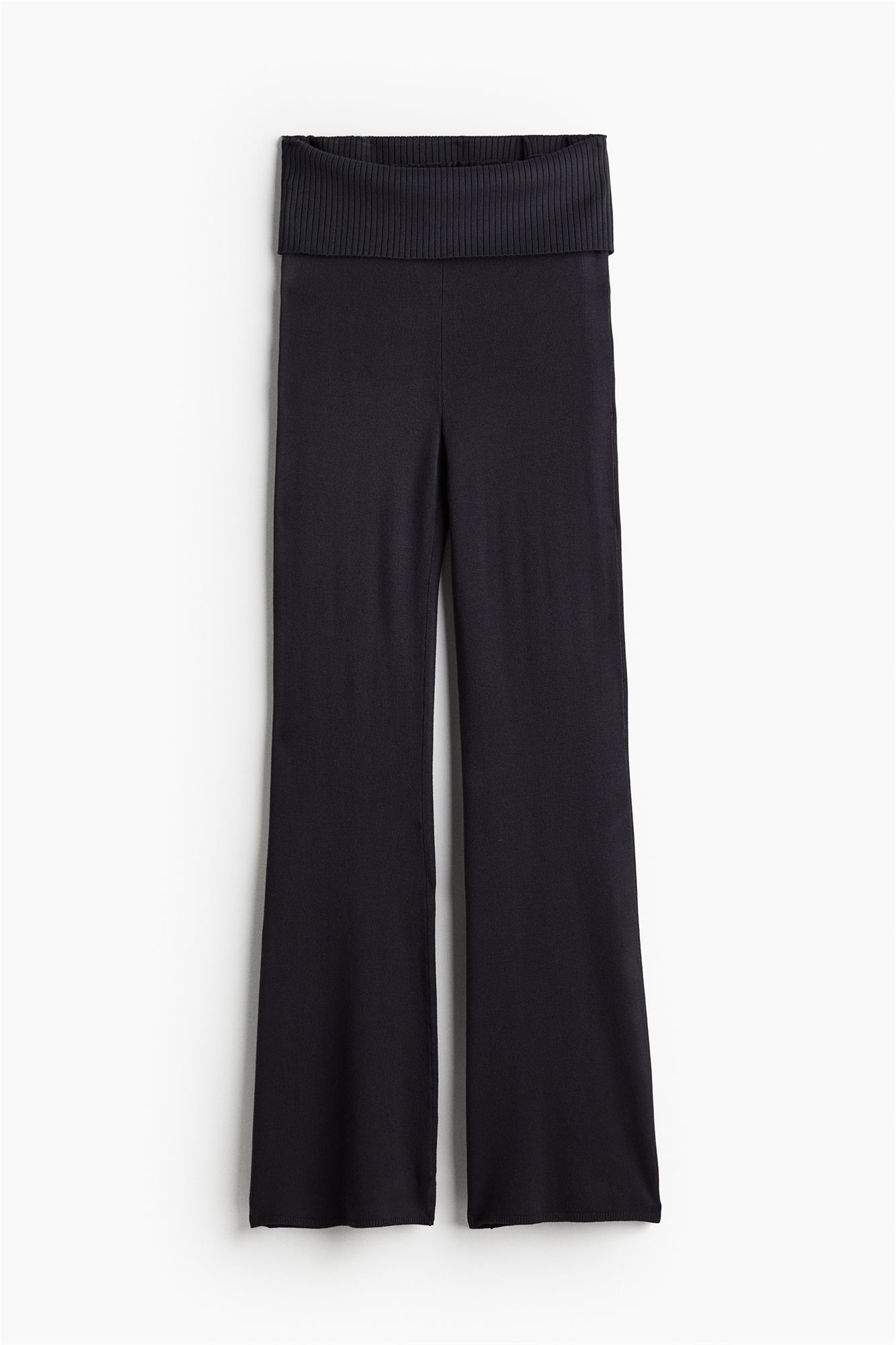 Облегающие брюки из мягкого тонкого трикотажа с откидным поясом и расклешенными краями.