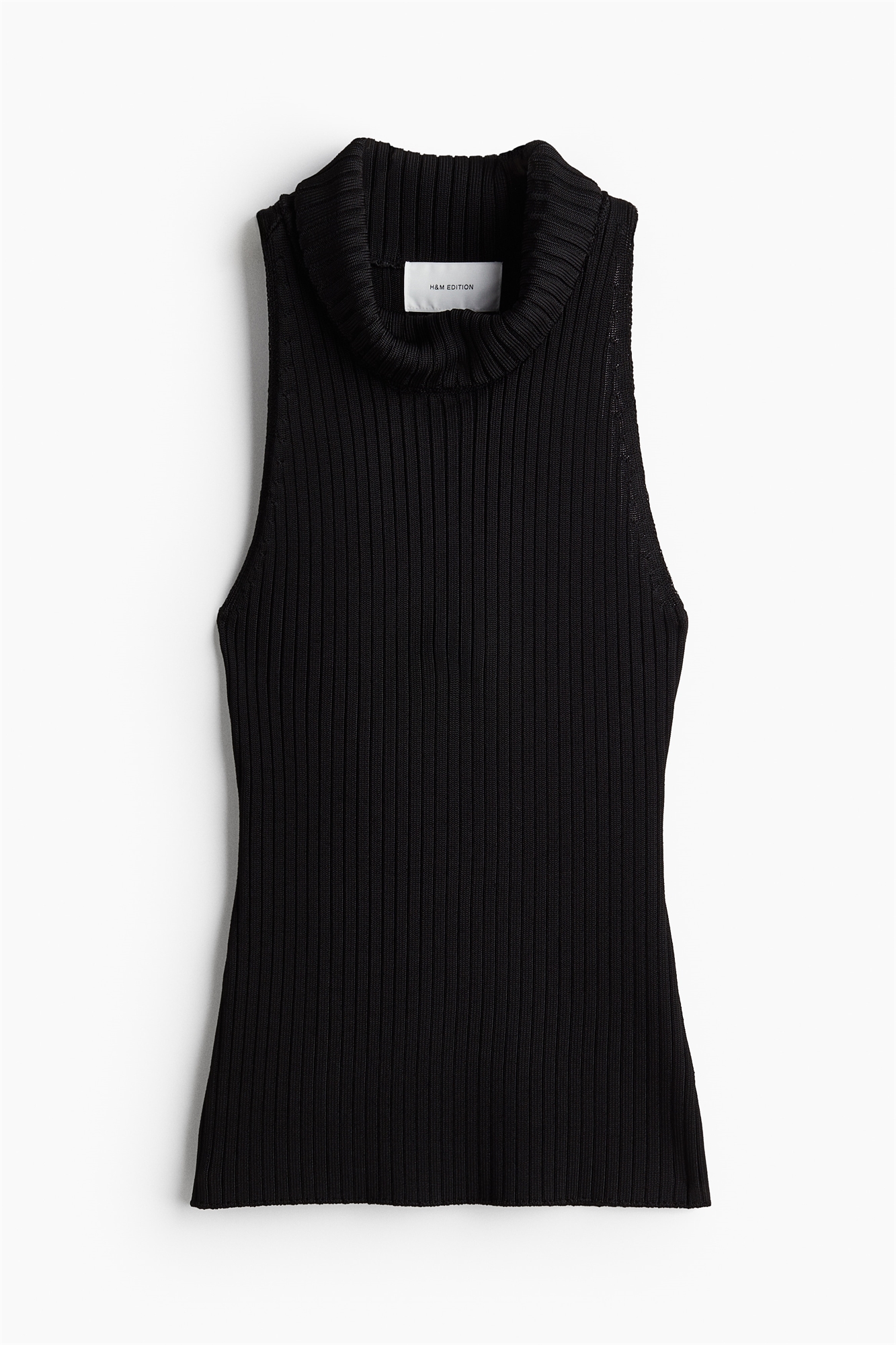 Облегающий топ без рукавов из трикотажа в рубчик с узким вырезом в верхней части и горловиной поло с легкой драпировкой спереди.