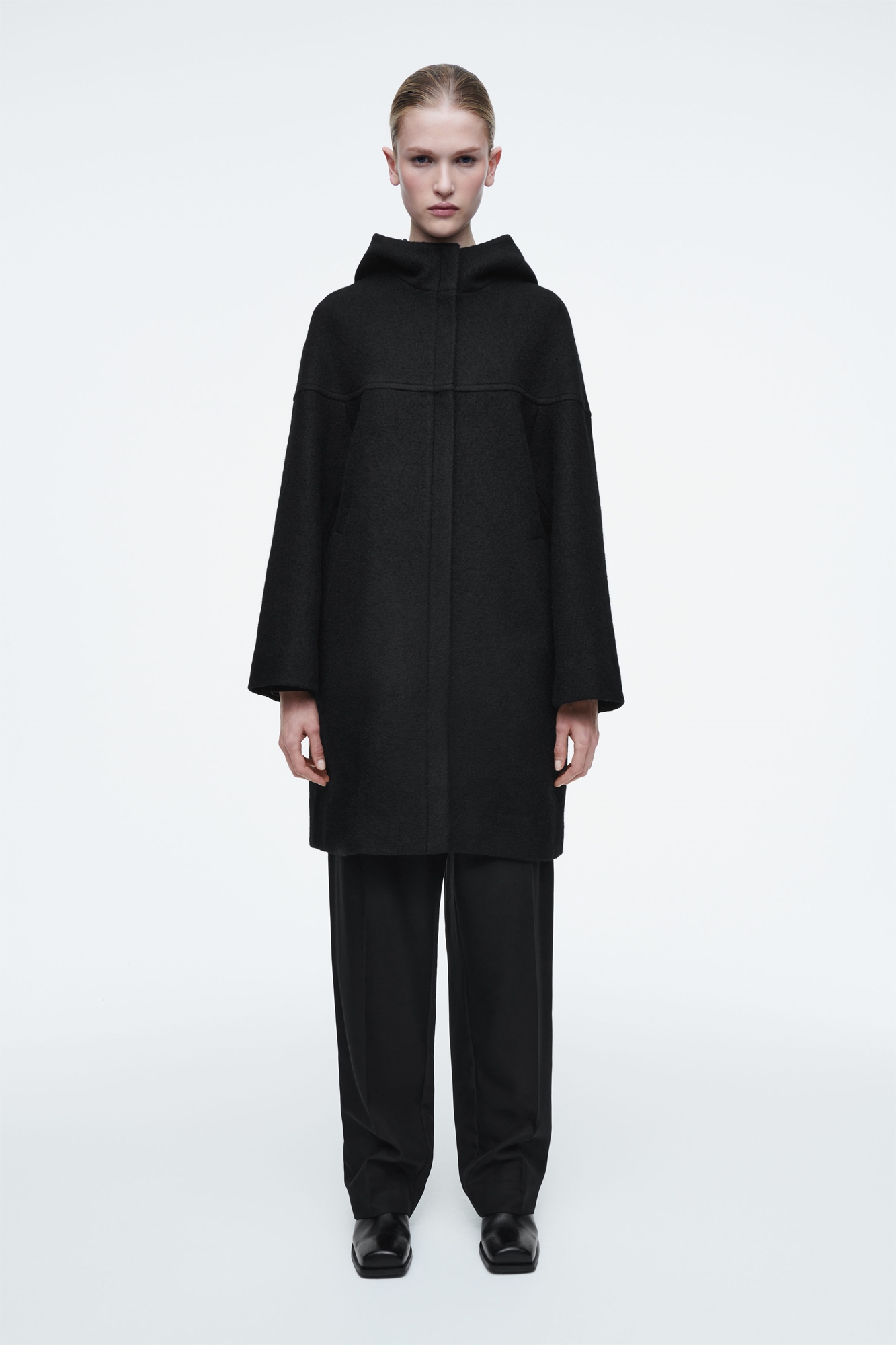 Классическое пальто поможет вам пережить эту зиму и не только. Это пальто, выполненное в универсальном черном цвете, изготовлено из вареной шерсти RWS и имеет воронкообразную горловину и облегающий капюшон для большего тепла. Пальто полностью на подкладке и застегивается на потайную молнию. Регулярный крой Застежка-молния Передние карманы Этот продукт содержит шерстяное волокно Responsible Wool Standard TE-00047206 (RWS) с ферм, сертифицированных в соответствии с требованиями к благополучию животных и землепользованию Оболочка: 100% шерсть RWS. Подкладка: 100% вискоза. Без учета отделки / Сухая чистка Длина по спинке для размера S составляет 111,1 см / Модель носит размер S