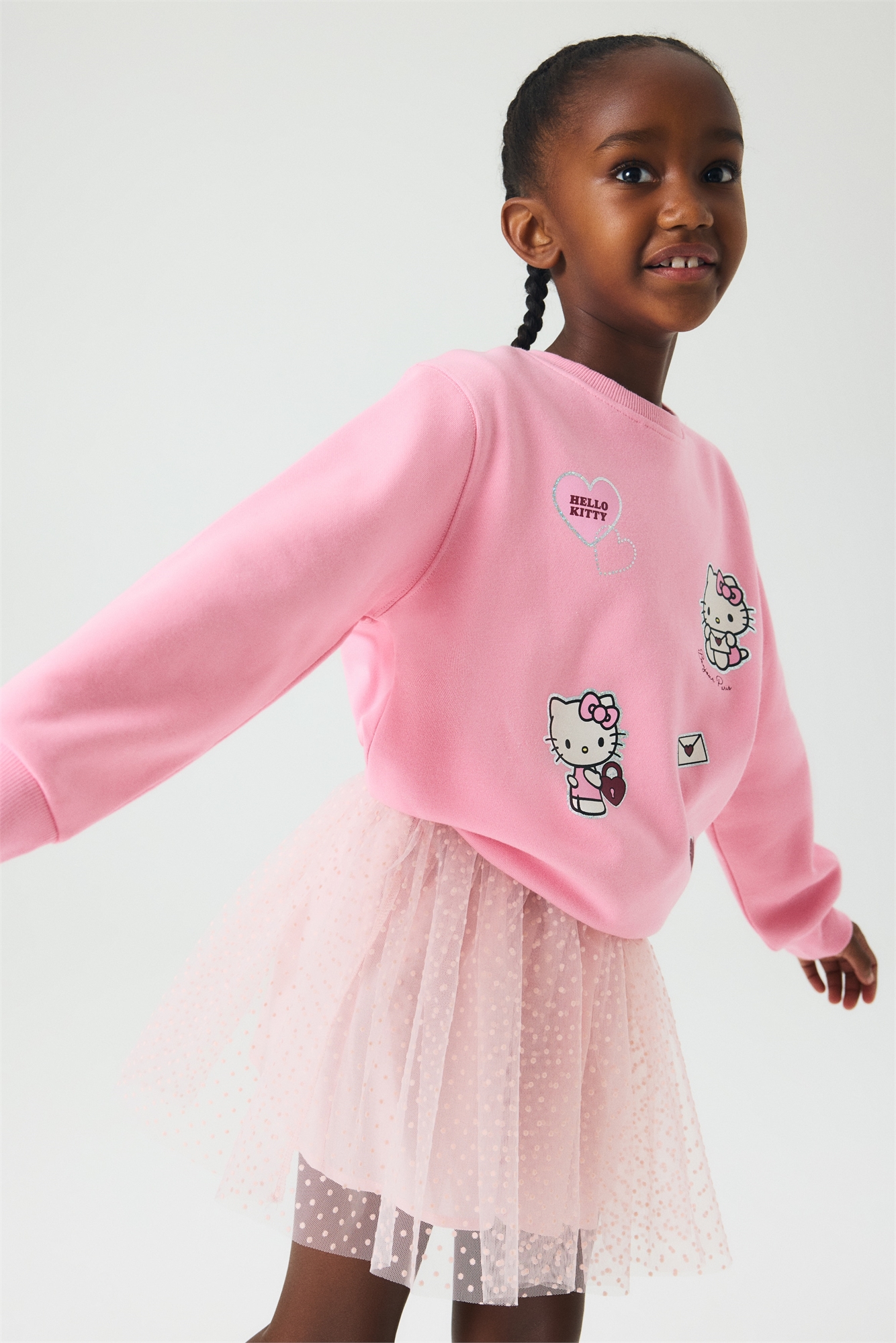 Толстовка из ткани свитшот с мотивом спереди. Спущенные плечи и ребристая отделка по вырезу горловины, рукавам и подолу. Мягкий начес внутри.