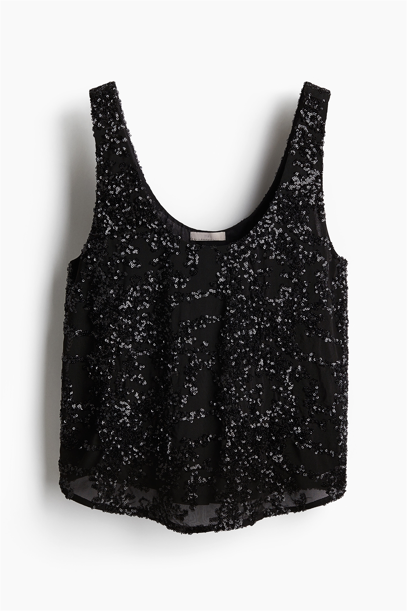 Жилет-топ из блестящей сетки с широкими бретелями и вырезом-лодочкой спереди и сзади. Подкладка из джерси.