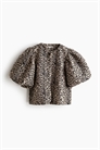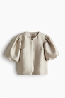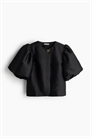 Короткая блузка из прочной ткани с круглым вырезом и короткими объемными рукавами-баллонами. На подкладке.