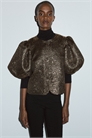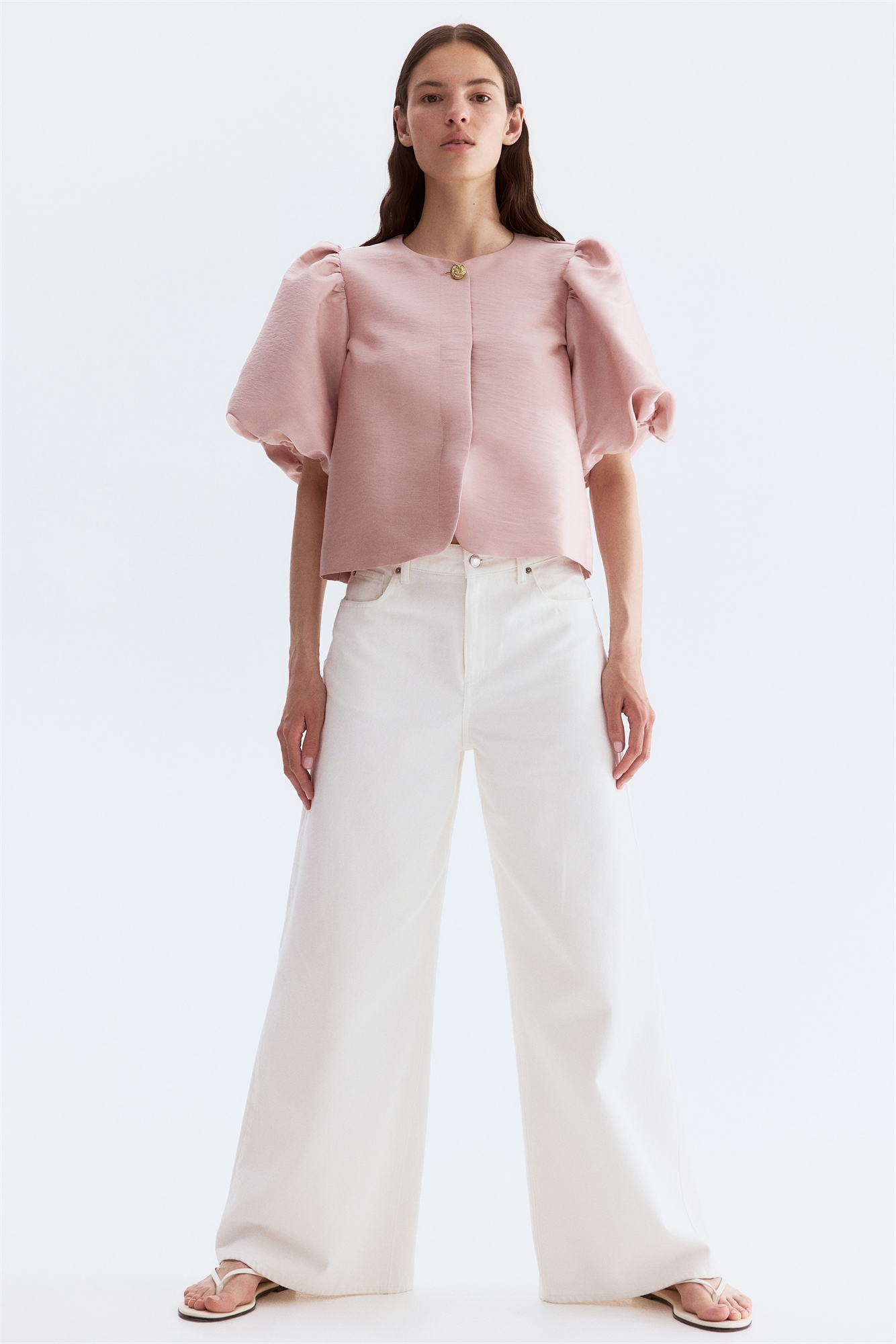 Короткая блузка из прочной ткани с круглым вырезом и короткими объемными рукавами-баллонами. На подкладке.