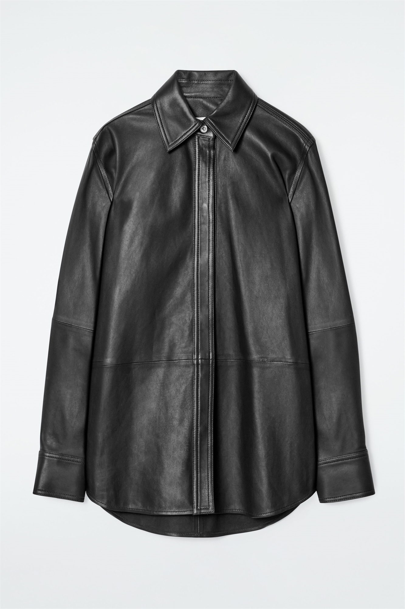 Эта кожаная рубашка имеет стойкий черный оттенок, который подходит для осенней палитры. Она изготовлена из мягкой кожи, которая приобретает уникальную патину в процессе носки, и имеет тональную строчку, придающую непринужденную форму. Для максимального эффекта сочетайте ее с брюками в тон. Свободный крой Застежка на пуговицах, накладной карман на груди COS поддерживает ответственное производство через Leather Working Group Материал: 100% кожа. Без учета отделки Длина по спинке для размера EU 36 составляет 78 см / Модель носит размер EU 36