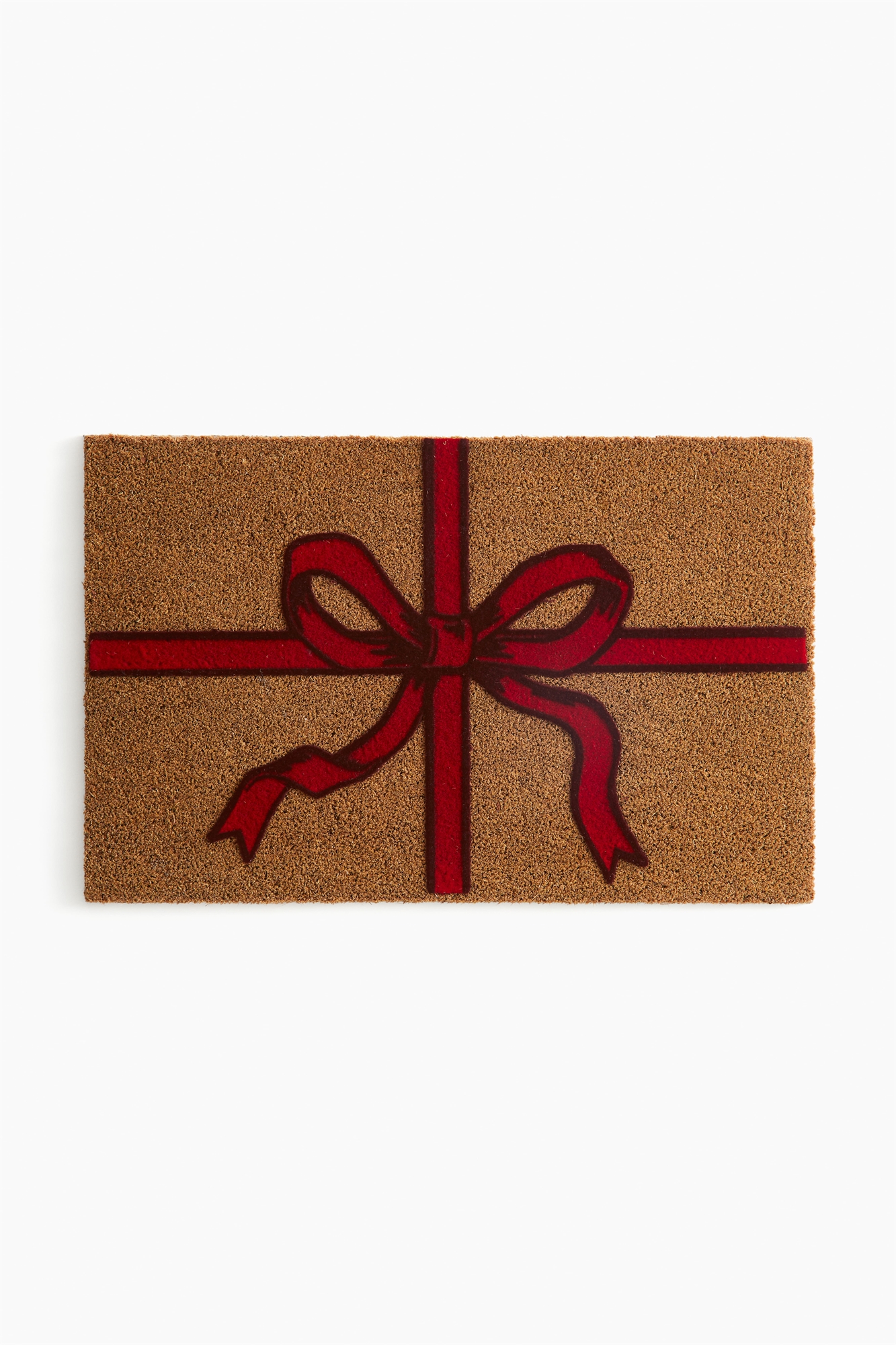 Прямоугольный половик из кокосового волокна с рисунком. Противоскользящие протекторы на обратной стороне.