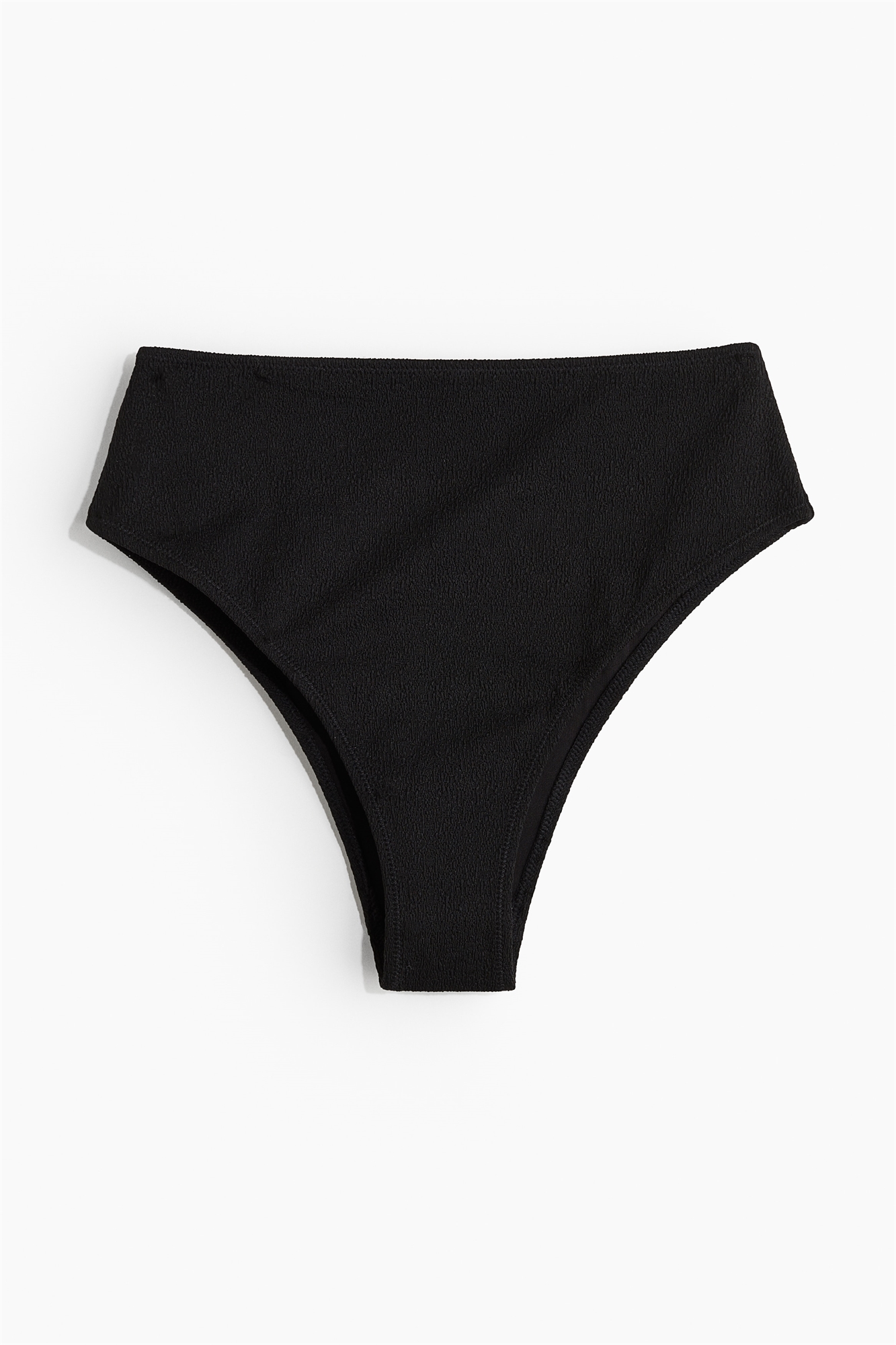 Полностью на подкладке, бикини с высокой талией из фактурной ткани с вырезом сзади.