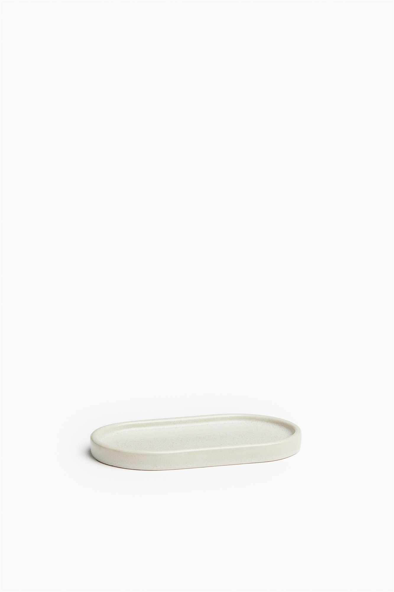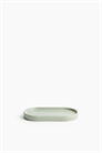 Овальный поднос из глазурованной керамики с низким бортиком. Высота 1 см. Ширина 8 см. Длина 16 см.