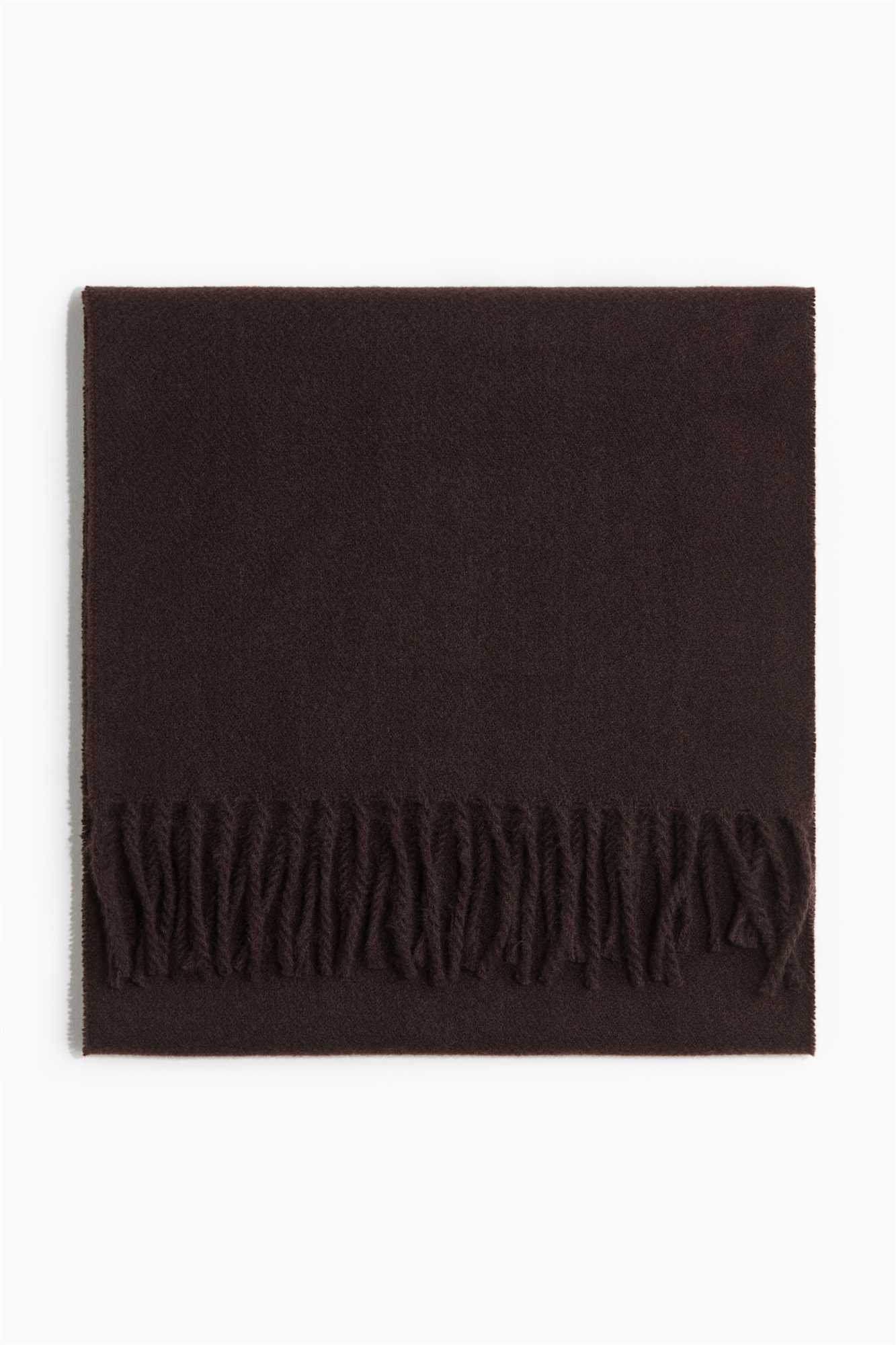 Шарф из мягкой ткани с добавлением шерсти с бахромой по коротким сторонам.