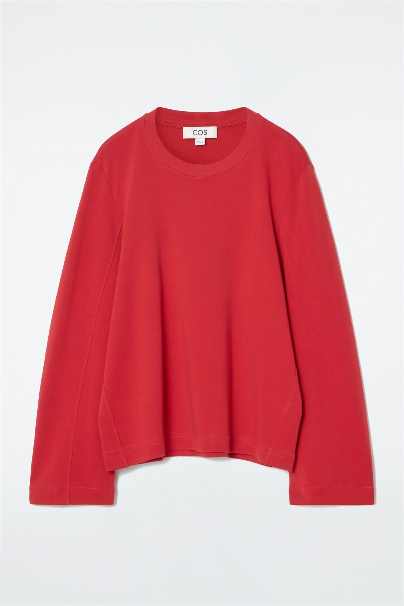 Безупречные базовые вещи - неотъемлемая часть женской коллекции COS. Эта рубашка классического кроя с длинными рукавами красного цвета изготовлена из мягкого хлопкового джерси плотностью 220 г/м². У нее закругленные длинные рукава и закругленные боковые швы. Regular fit, 220 г/м² Внешняя ткань: 100% хлопок. Детали не учитываются/Машинная стирка Длина по спинке в размере S = 59,5 см/Модель носит размер S