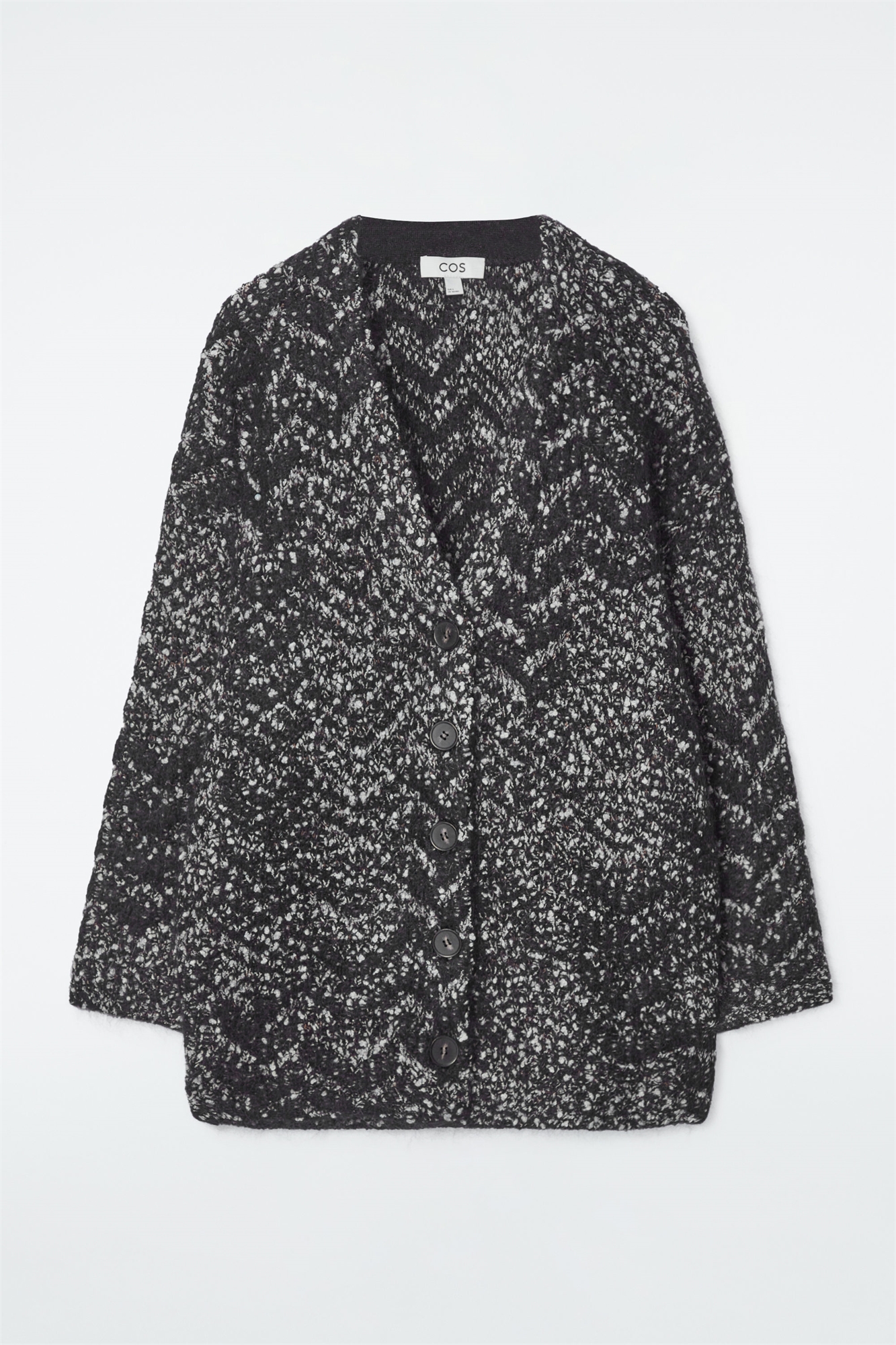 В этом кардигане команда женской одежды COS интерпретирует классический дизайн в современном ключе. Изготовленный из смеси мягкого мохера, шерсти и хлопка, он имеет искаженный узор "елочка" и завышенный крой, который подчеркивает фигуру. V-образный вырез и застежка на пуговицах делают его идеальным вариантом для многослойного ношения в переходный сезон. Oversized fit Планка на пуговицах Благодаря использованию переработанного нейлона мы сокращаем потребность в ограниченных природных ресурсах и уменьшаем выбросы парниковых газов Материал оболочки: 32 % переработанного полиамида (переработанный нейлон), 31 % хлопка, 28 % мохера RMS, 7 % шерсти RWS, 1 % эластана, 1 % полиамида. Детали, кроме длины по спинке в размере S = 70 см/ Модель носит размер S