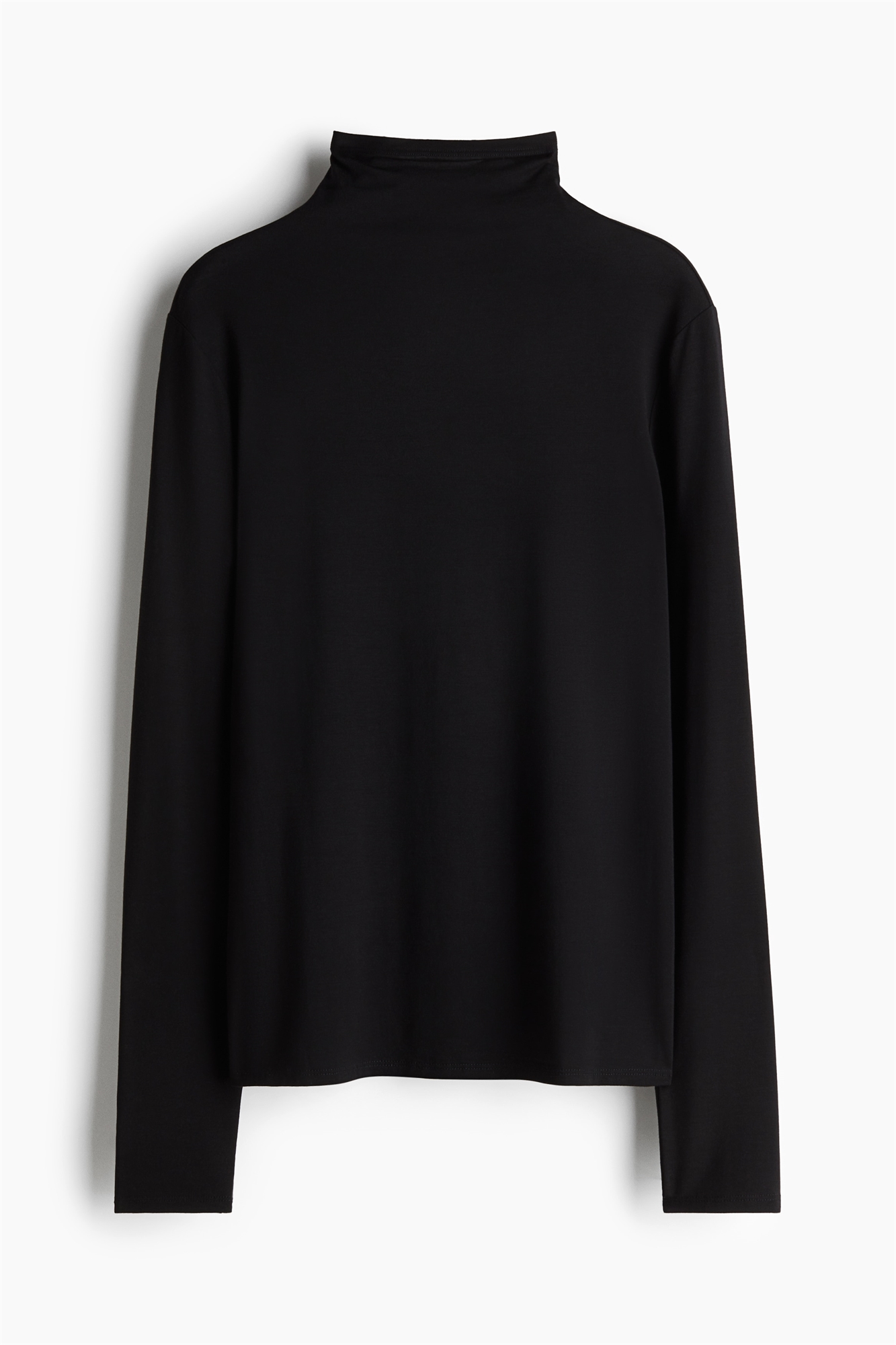 Облегающий топ из мягкого лиоцеллового трикотажа с черепаховой горловиной и длинными рукавами.