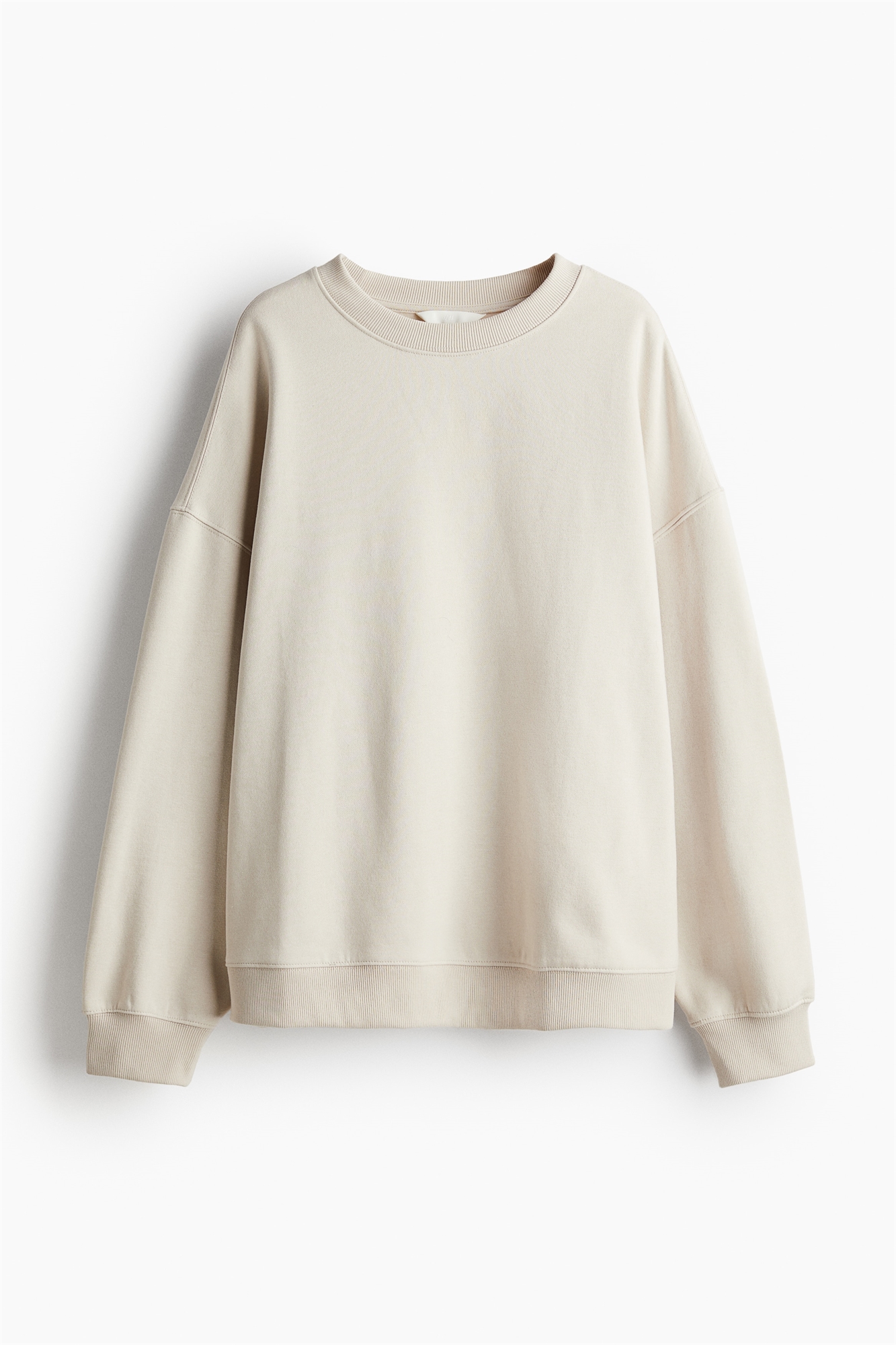 Свитшот оверсайз из футера с мягкой ворсистой изнанкой. Круглый вырез с ребристой отделкой, спущенные плечи и длинные рукава. Ребристые манжеты и подол.